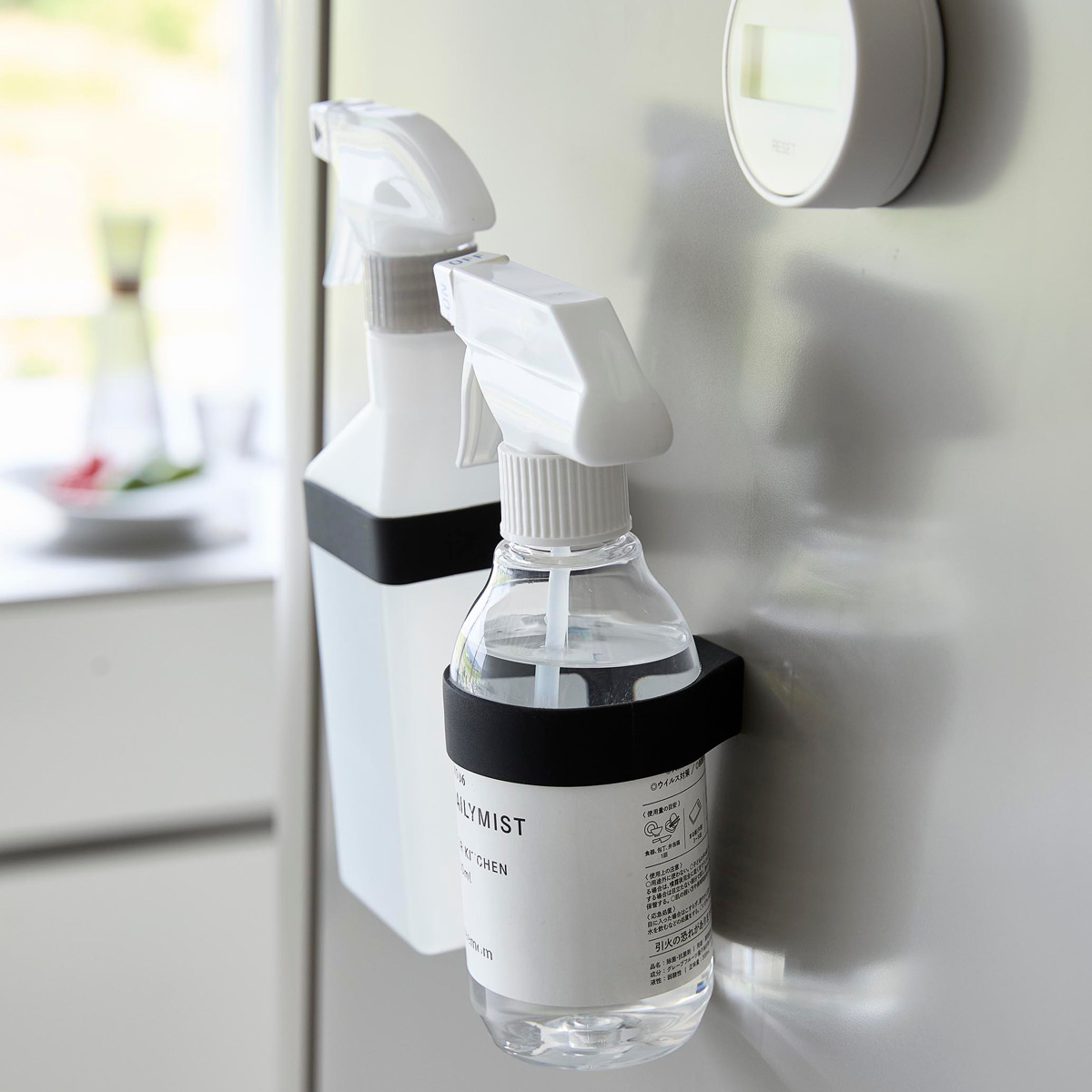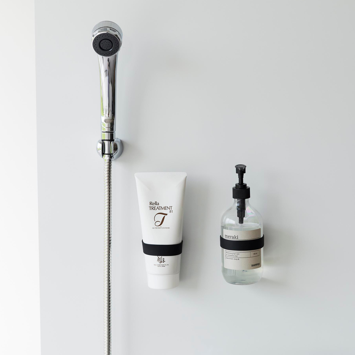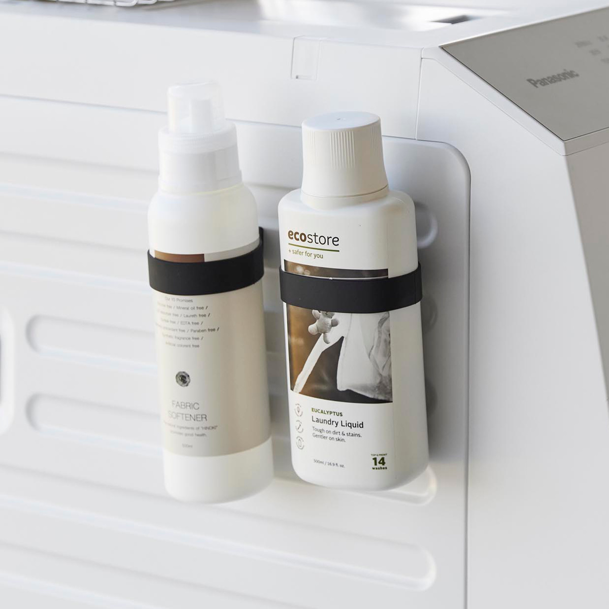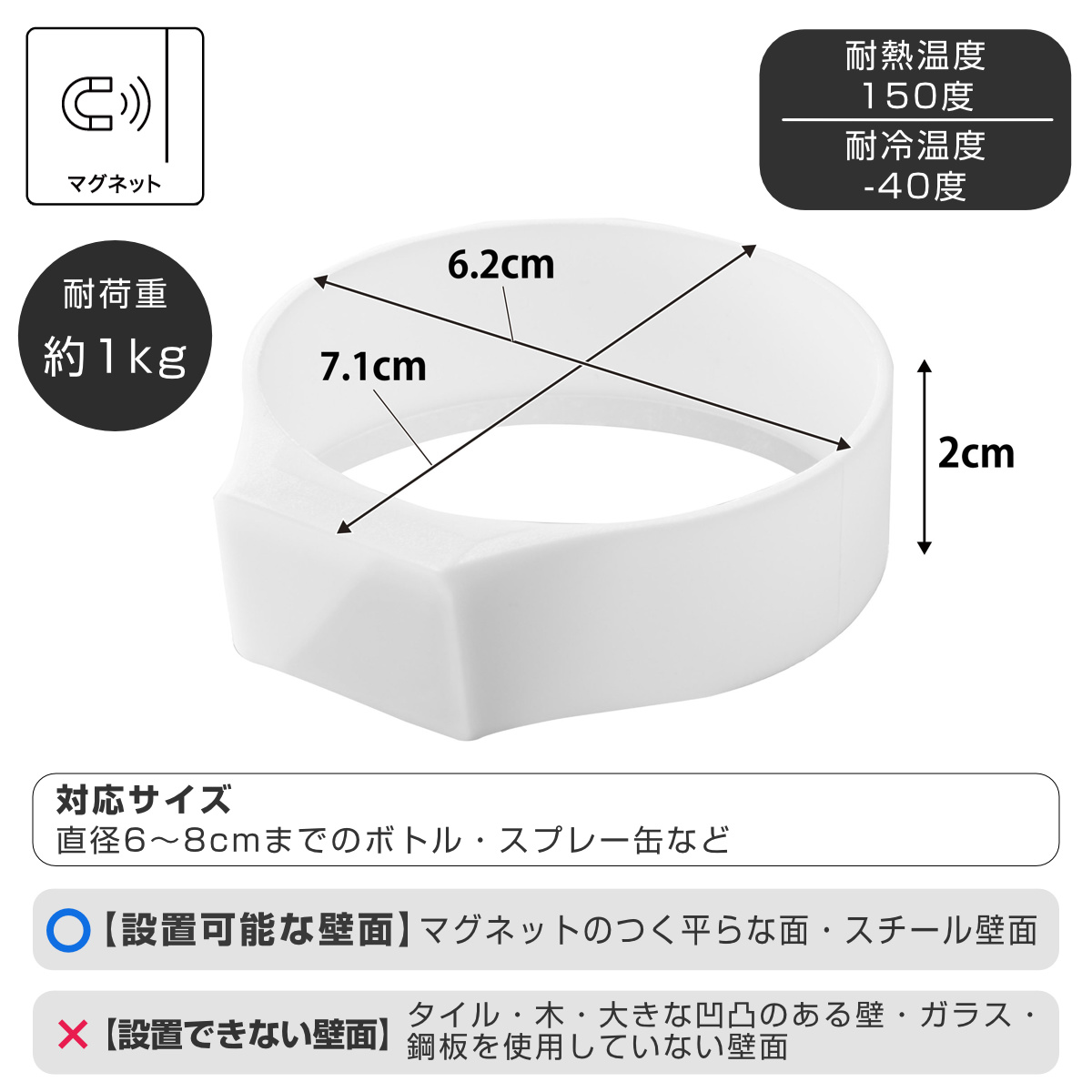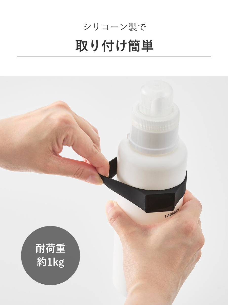 置き場所に困るボトル類を浮かせて収納できるシリコーンバンドです。お好みの位置にマグネットで浮かせることができます。