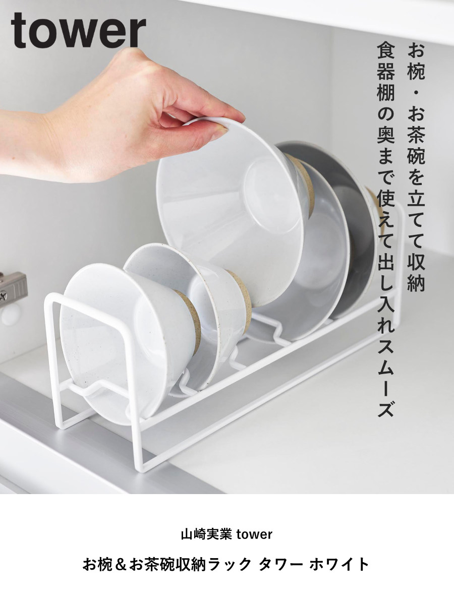 山崎実業 tower お椀&お茶碗収納ラック タワー ( 4903208013970 タワーシリーズ お椀収納ラック お茶碗収納ラック お椀 お茶椀 収納ラック スタンド 椀 サラダボウル 省スペース シリコンクッション 食器 ラック 収納 食器立て ) 【ブラック】