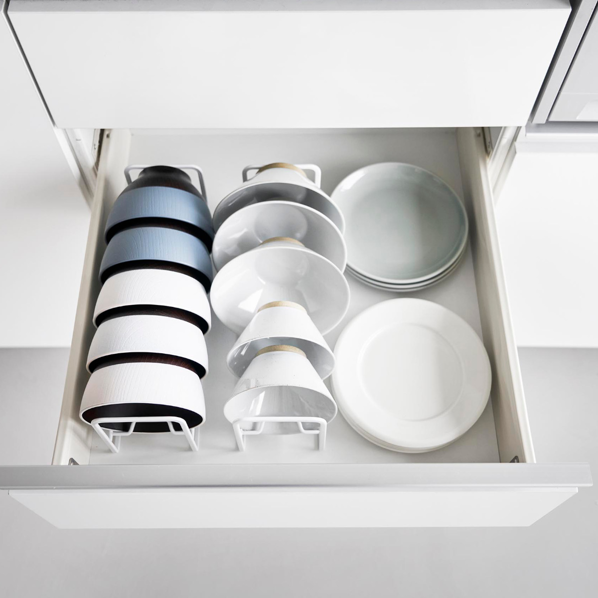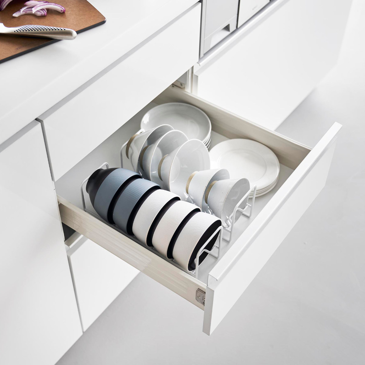 上から見やすく、取り出しやすい便利な引き出し収納。よく使う食器をまとめて引き出しに収めておくのもおすすめです。