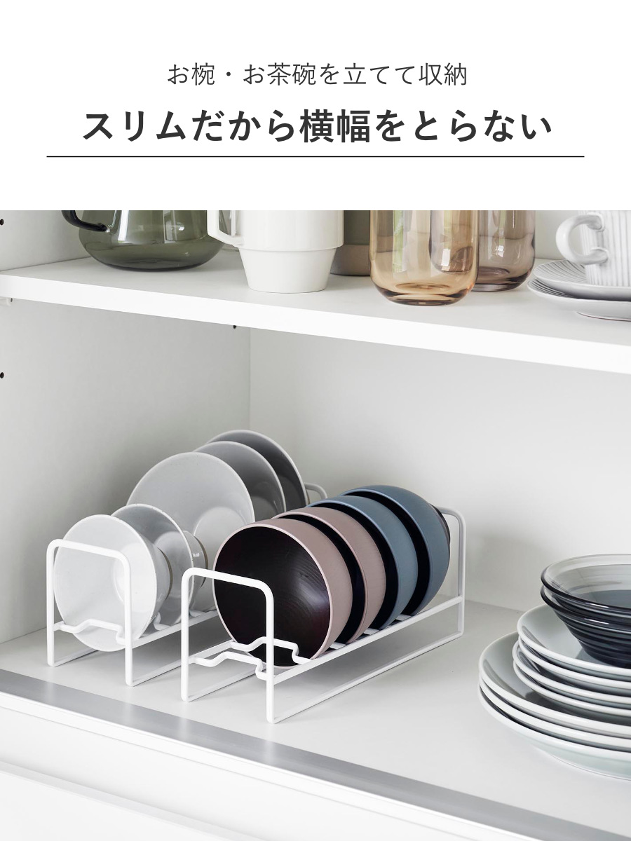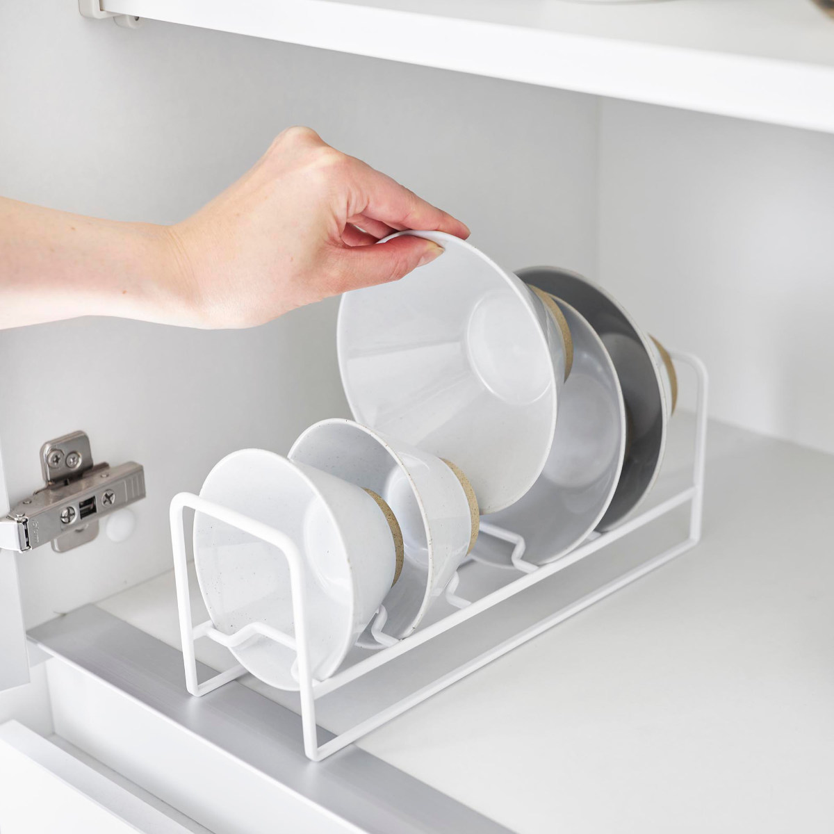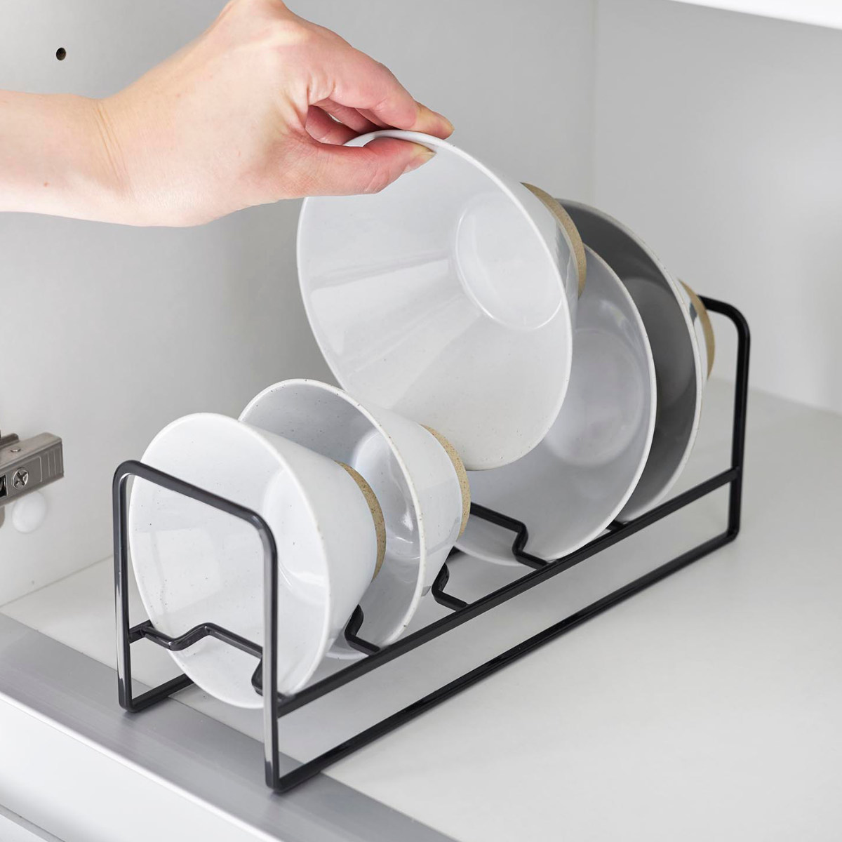 お椀やお茶碗を5つまで収納できるお皿スタンドです。積み重ねずに並べて収納することで、選びやすく取り出しやすいです。