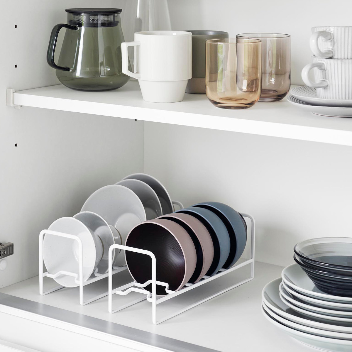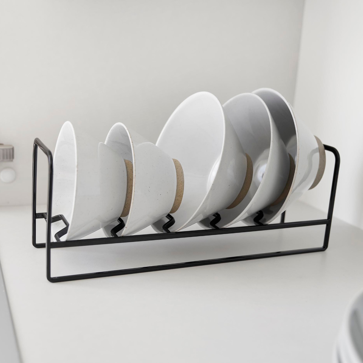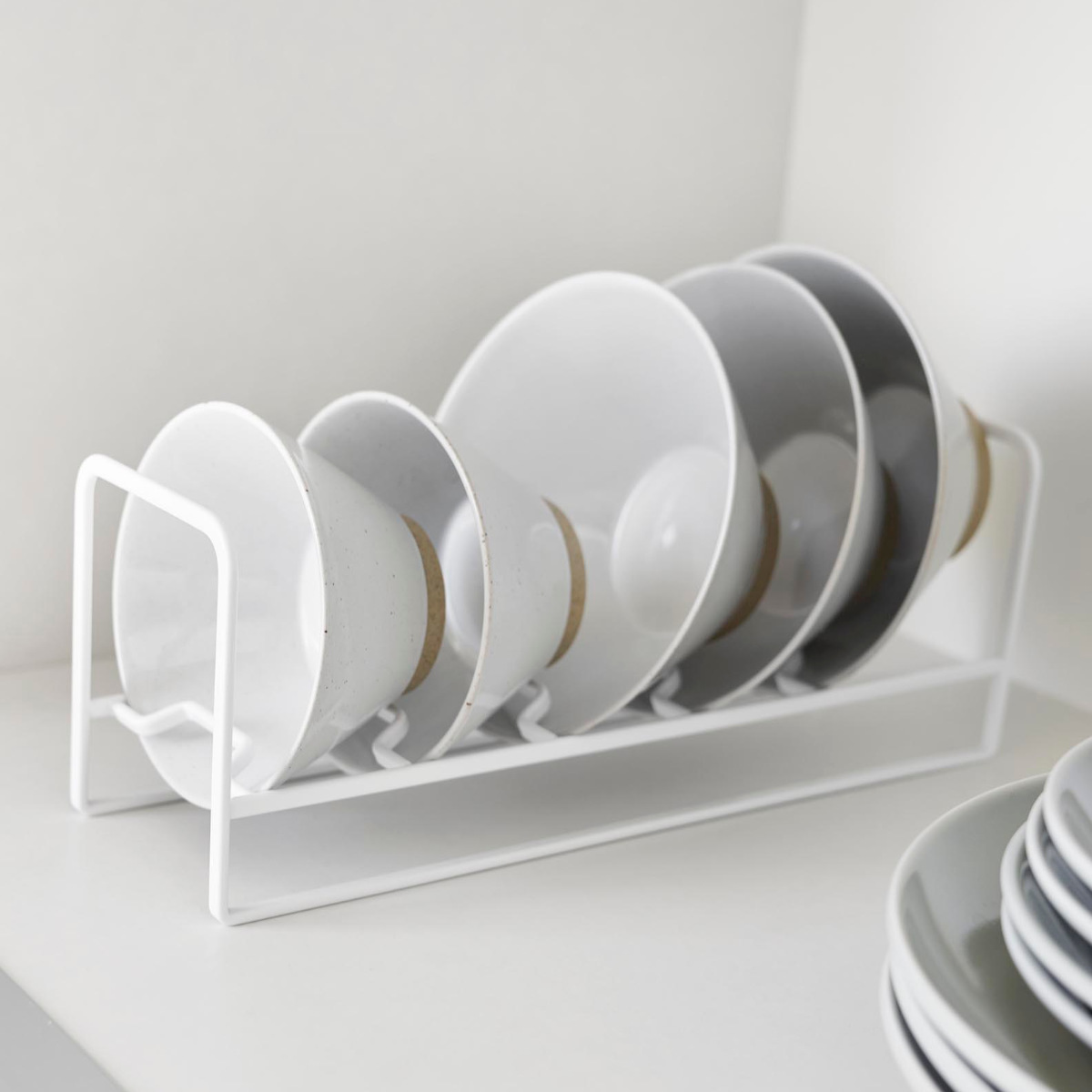 お椀やお茶碗を5つまで収納できるお皿スタンドです。積み重ねずに並べて収納することで、選びやすく取り出しやすいです。