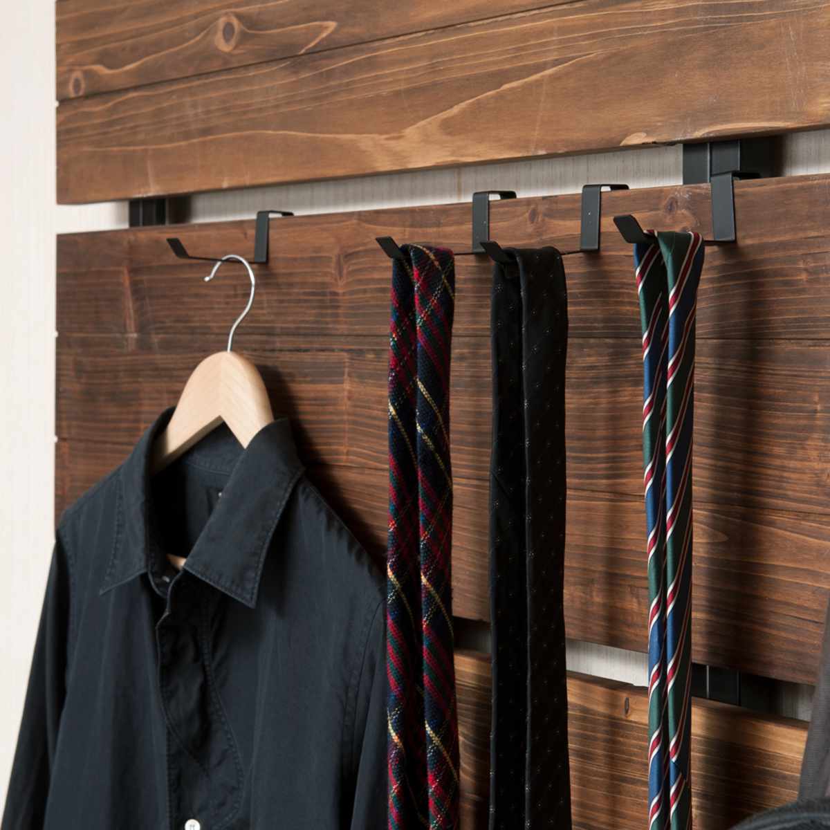バッグや帽子、アクセサリーなどを掛けられるブラックのフックが6個付属しています。アイデア次第で使い方が広がり、浮かせる収納がお部屋をスッキリと整えます。