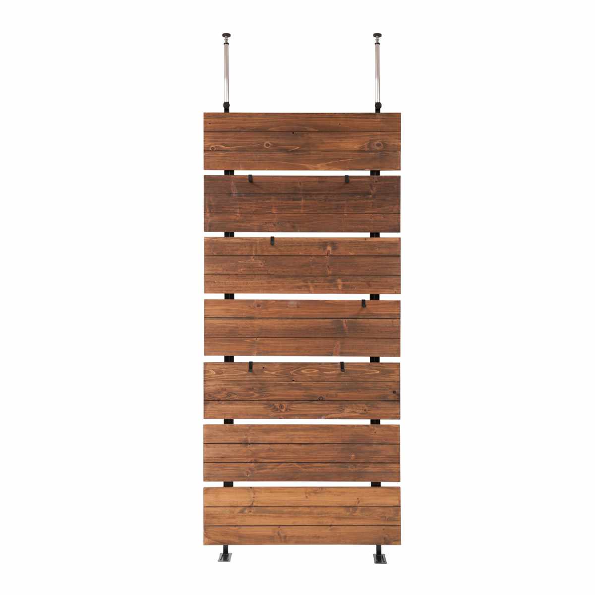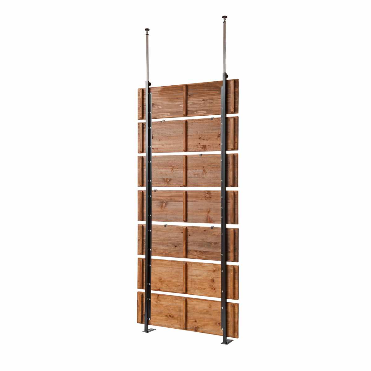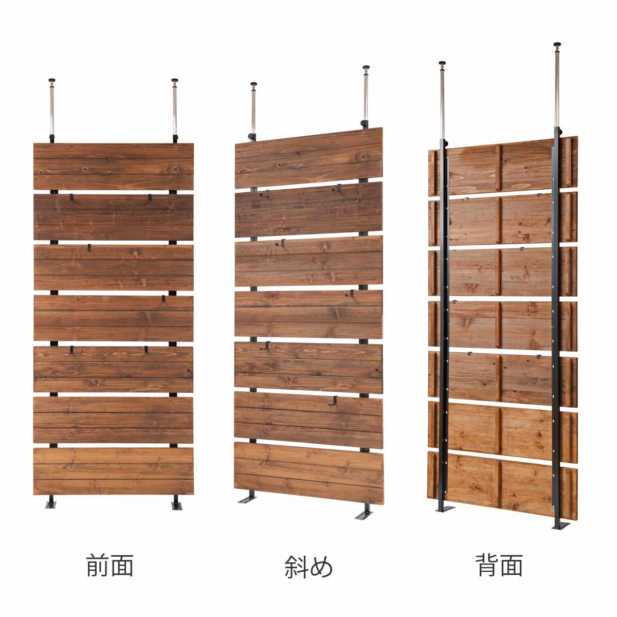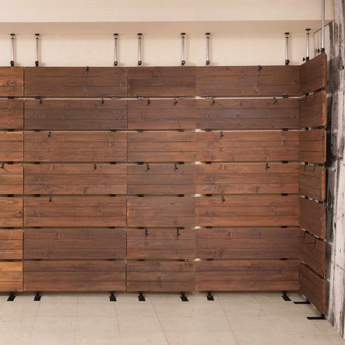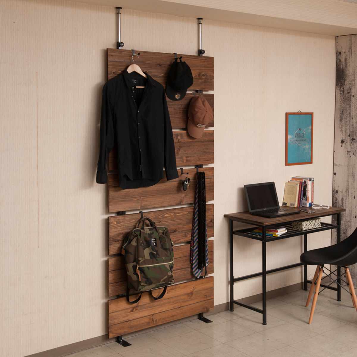 壁面収納ができる、突っ張り式のウォールパーテーションです。ヴィンテージ感漂うデザインで、見せる収納として服や小物、趣味の物などをお洒落に飾っていただけます。天井からの突っ張り式で、壁に穴を開ける必要がないので、賃貸にお住まいの方でも安心してご使用いただけます。
