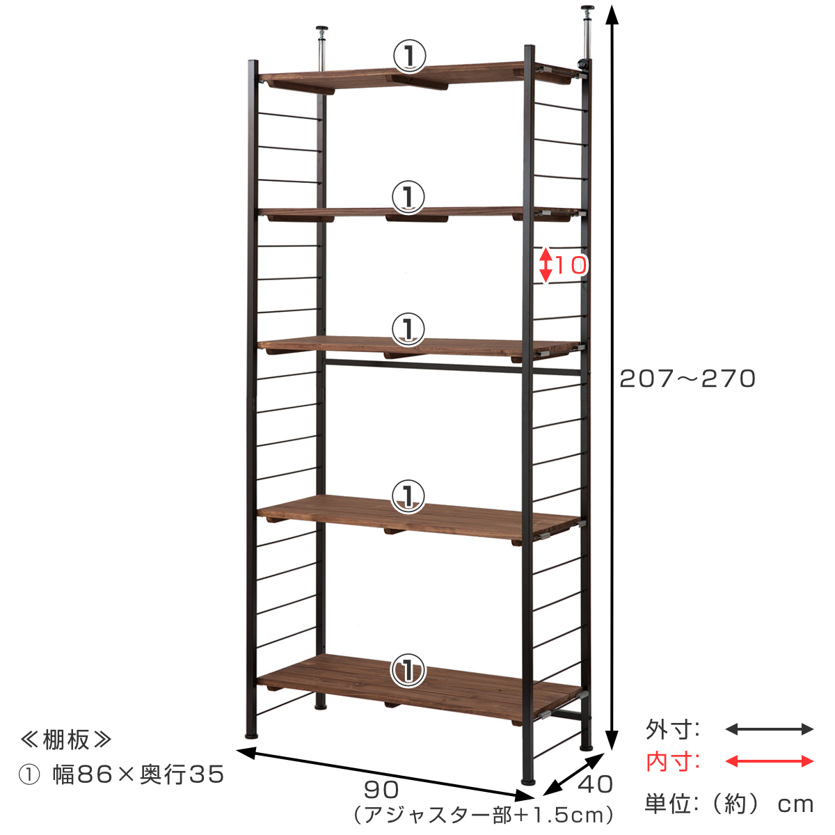| サイズ | 約 幅90×奥行40×高さ207~270(cm) |