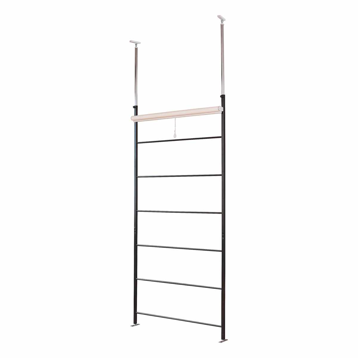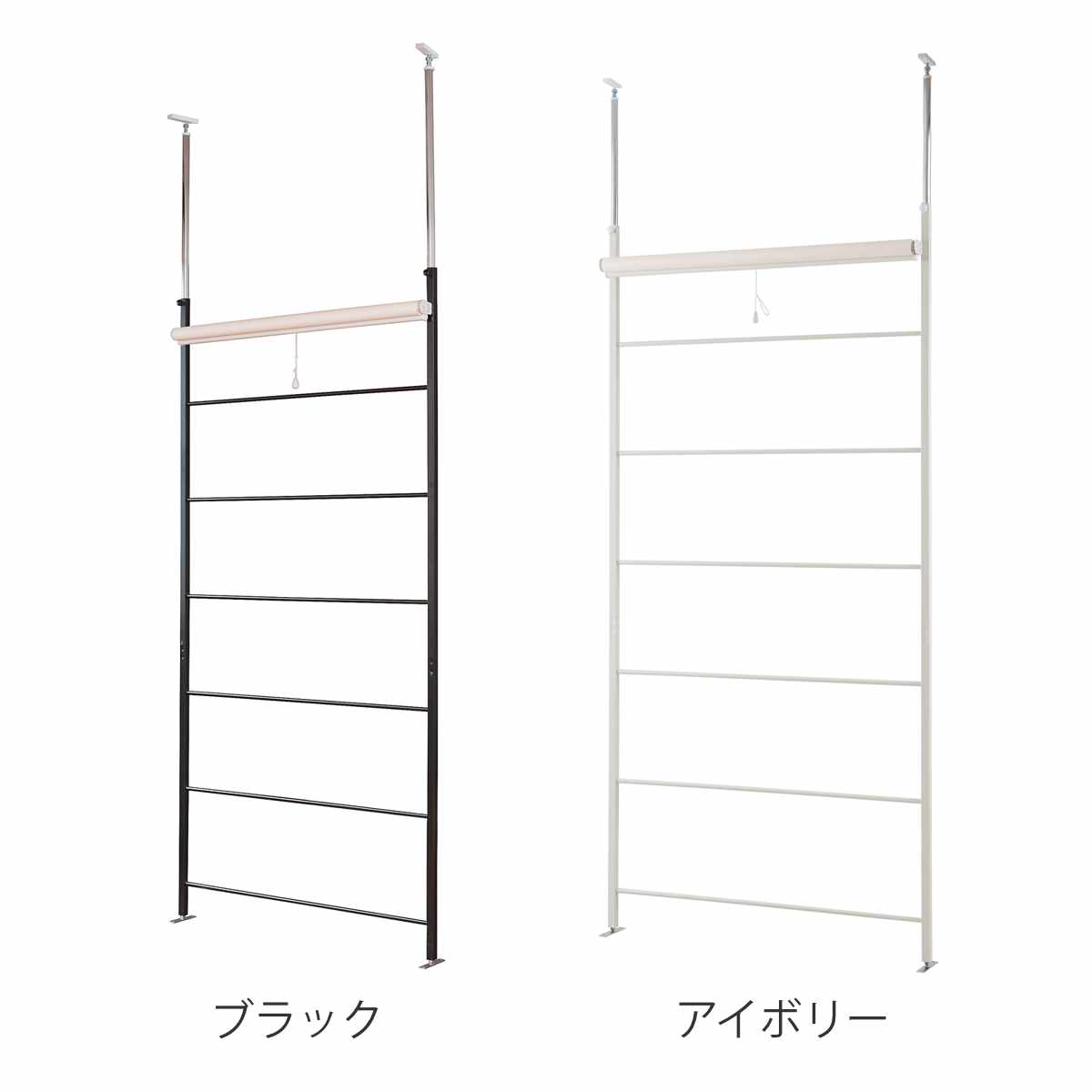 突っ張り ラダーパーテーション ロールスクリーン付き 幅92cm 日本製 ( つっぱり パーテーション ロールスクリーン 間仕切り 目隠し 衝立 パーティション ラダーラック 収納 突っ張り式 ついたて 自立 仕切り おしゃれ ) 【ブラック】