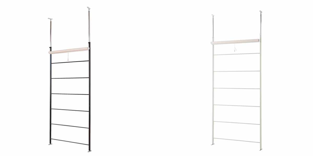 ラダー状のパーテーションなので、光がラダーの隙間から差し込み、圧迫感なく、明るく間仕切ることができます。ちょっとした小物などを掛けることもできるので便利です。