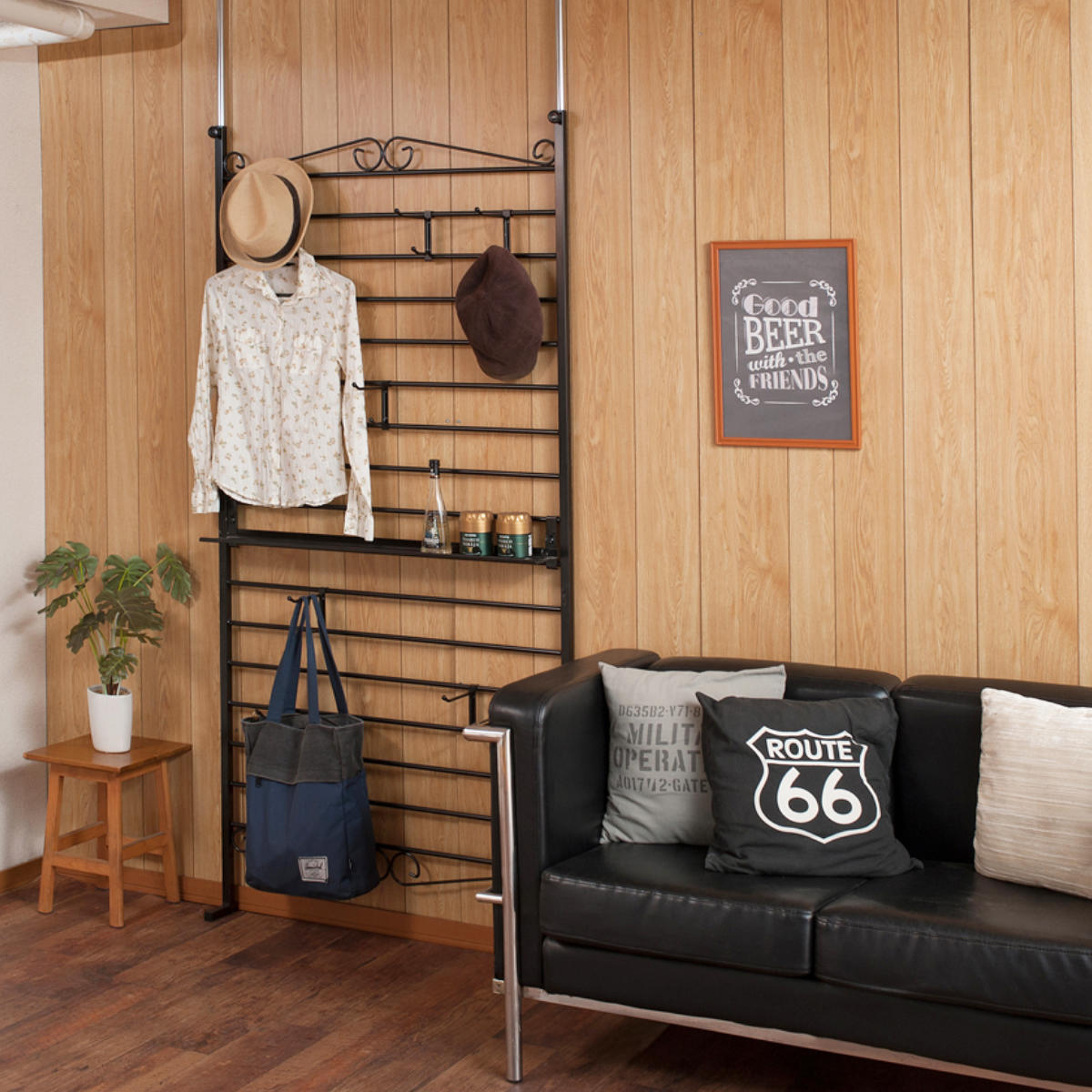 突っ張り ラダーラック 幅95cm フック5個 棚板1枚付き カールデザイン ( 壁面収納 ウォールラック つっぱり 突っ張り式 ラック フック付 壁面 収納 突ぱり 壁面ラック 突っ張りラック パーテーション 省スペース ) 【ブラック】