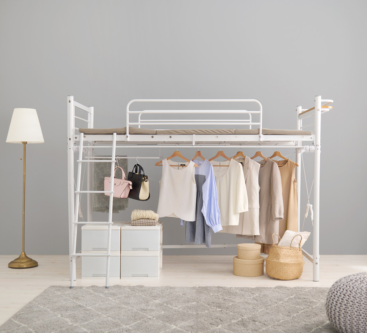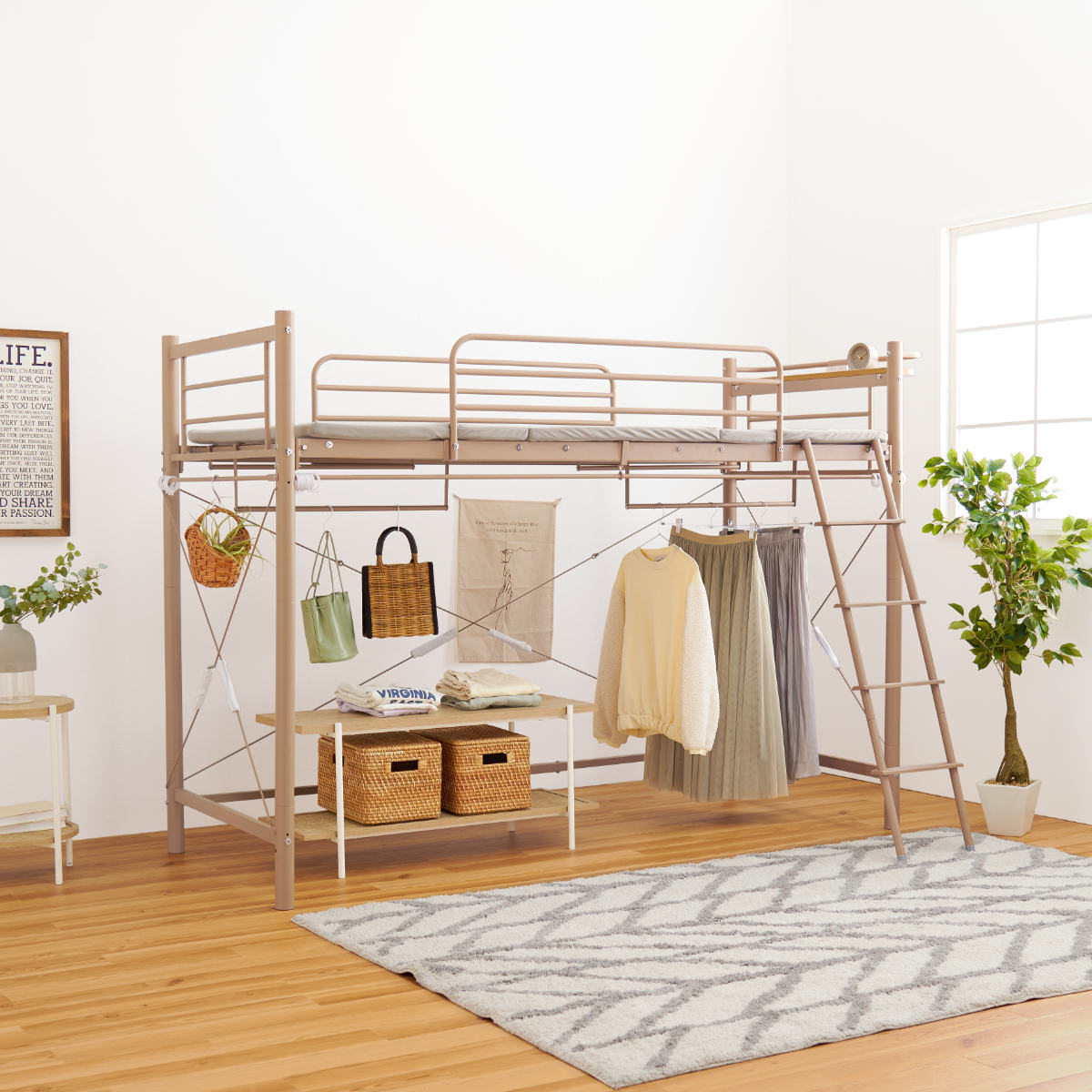 ライフスタイルに合わせて使い方を変えることができる2WAY仕様のロフトベッドです。引越しやお子様の成長などで使い方が変わっても、組み替えるだけで、通常のシングルベッドとしてもお使いいただけます。
