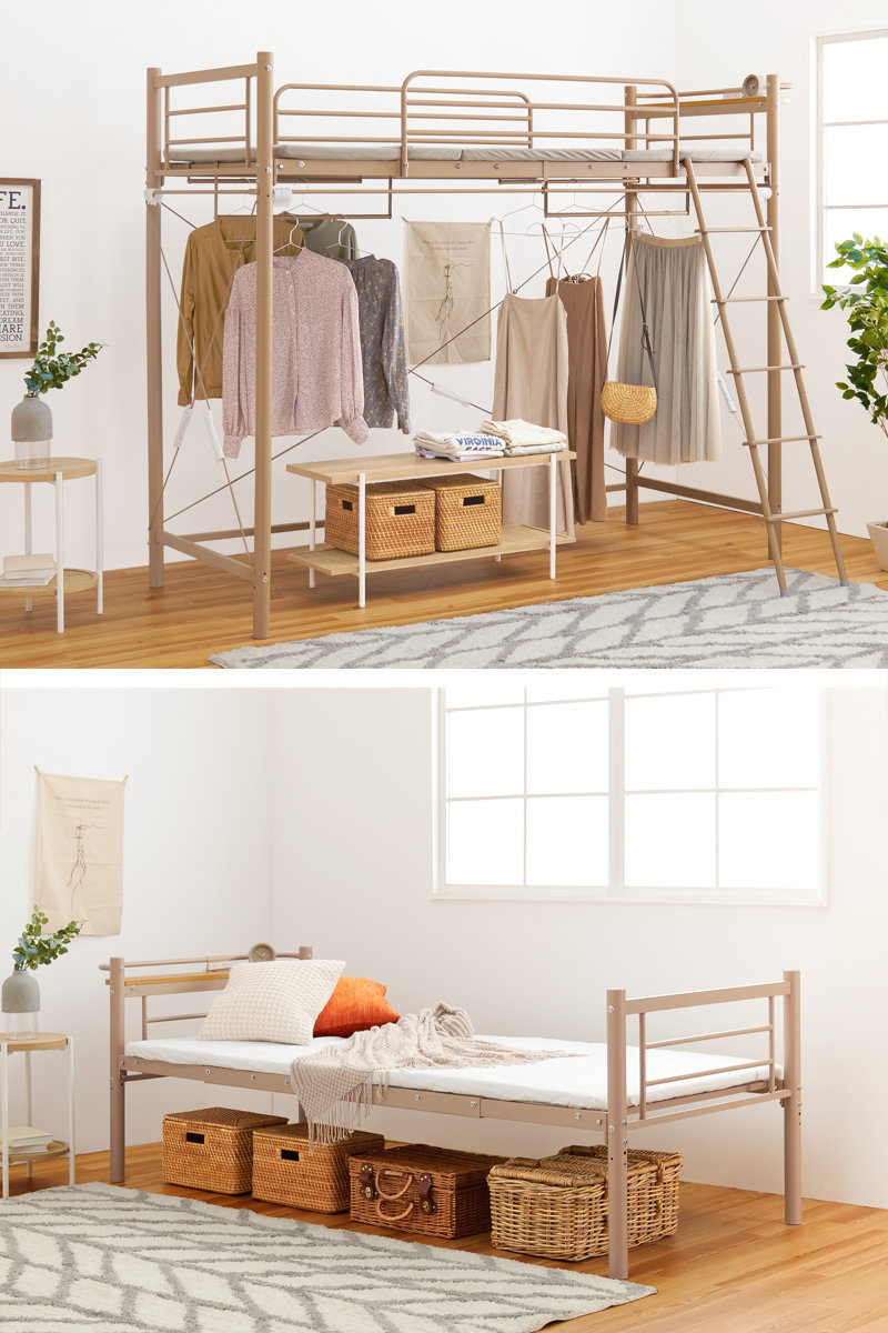 ライフスタイルに合わせて使い方を変えることができる2WAY仕様のロフトベッドです。引越しやお子様の成長などで使い方が変わっても、組み替えるだけで、通常のシングルベッドとしてもお使いいただけます。
