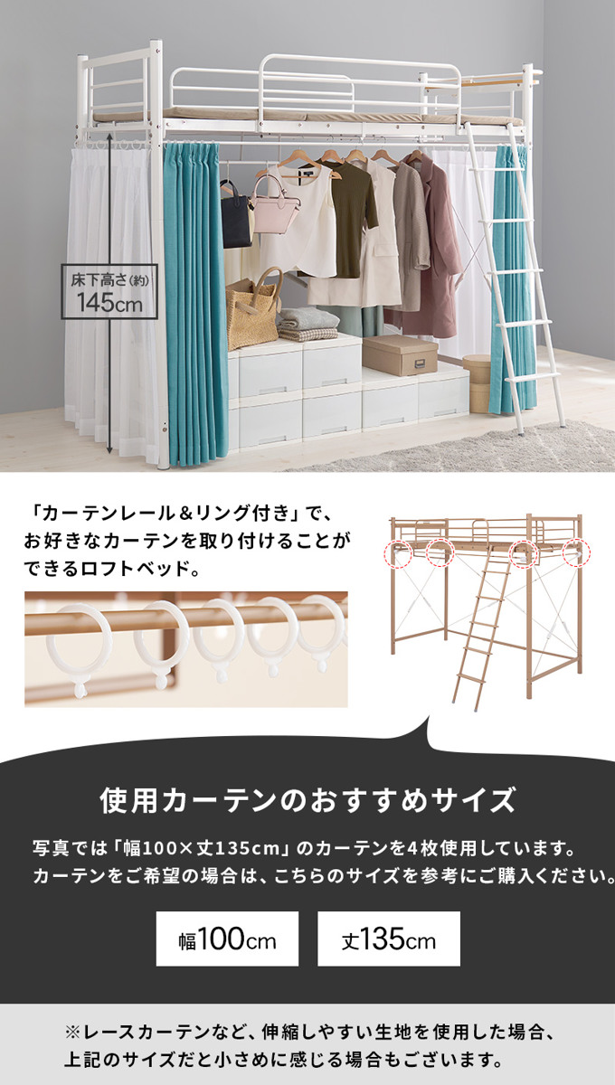 ベッドフレームの4か所にはカーテンリングが付いています。急な来客時などにサッとカーテンを閉めてベッド下を隠すことができます。