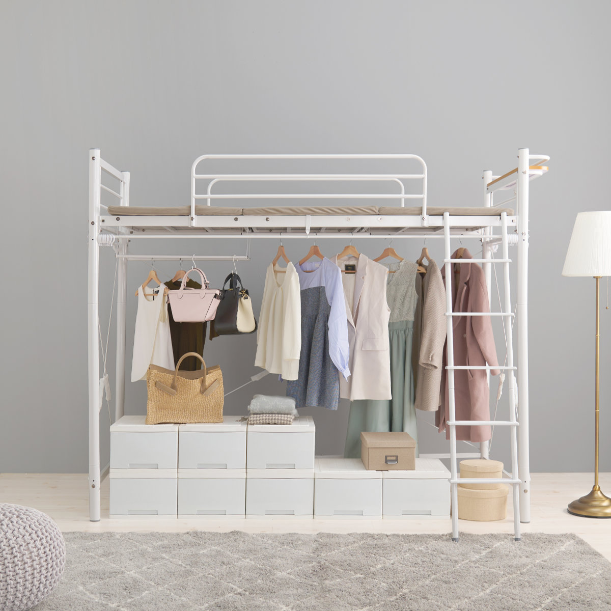 ベッド下には大容量収納することができ、お部屋のスペースを有効活用することができます。ソファやデスクなどの家具を置けば、小さなお部屋として自分だけのスペースに。