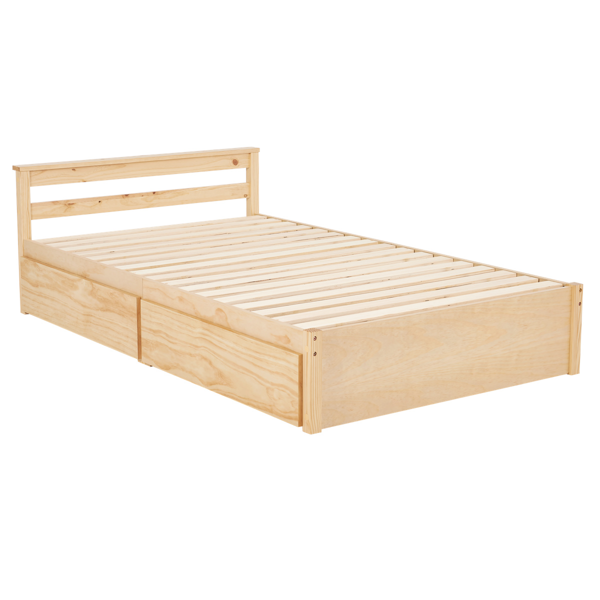 引出し付ベッド セミダブル 天然木 すのこ 耐荷重200kg ( ベッド 収納付 引出し 2杯 寝具 ベッドフレーム 棚付 ライトブラウン ナチュラル ホワイトウォッシュ ) 【ナチュラル】