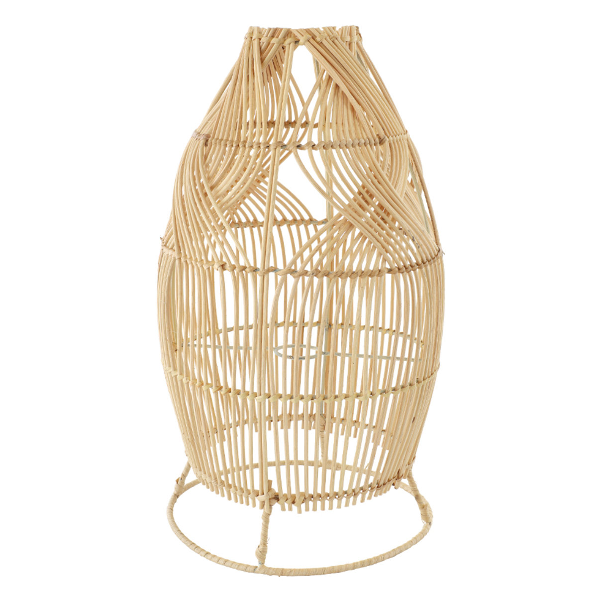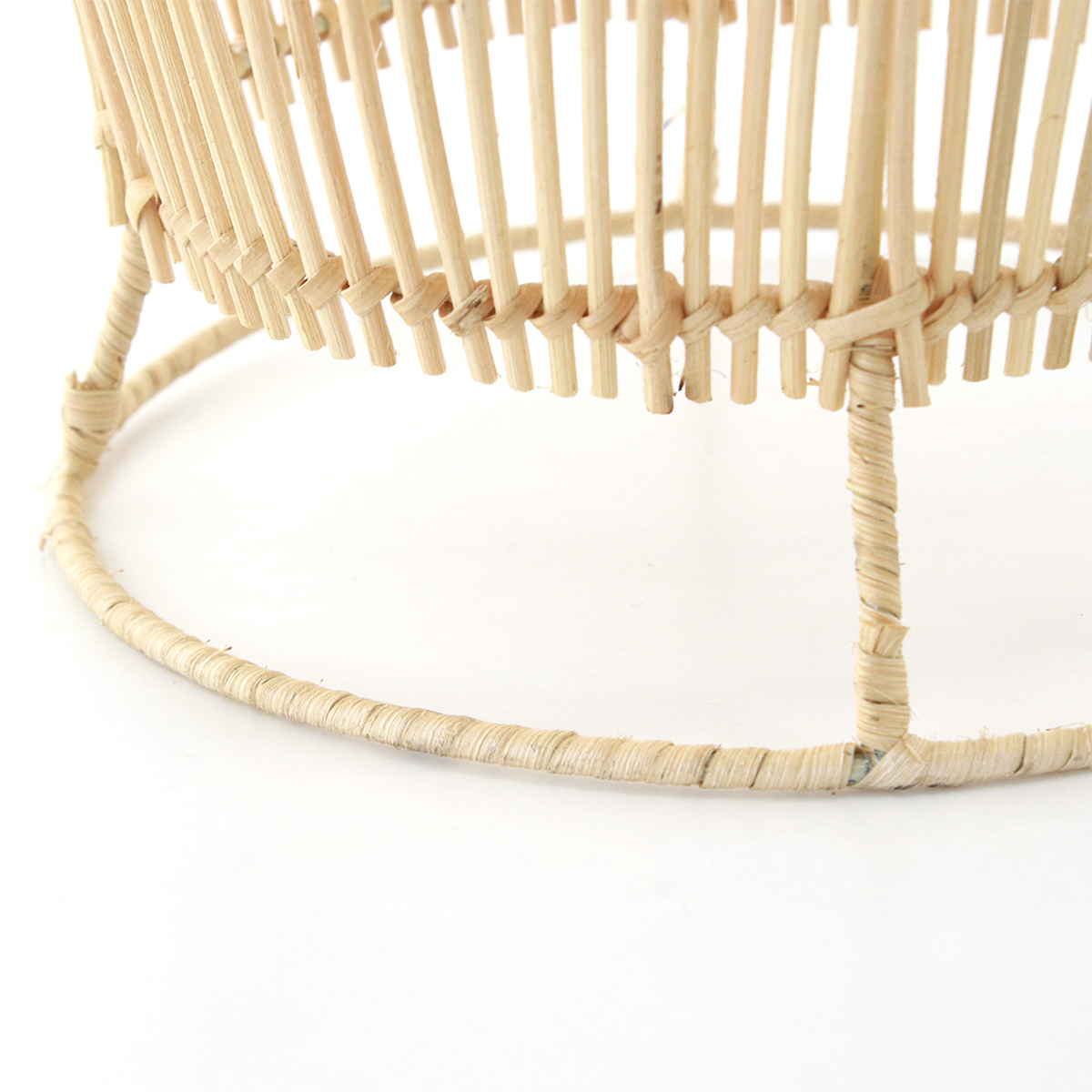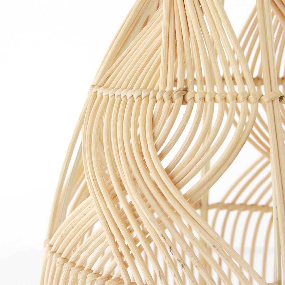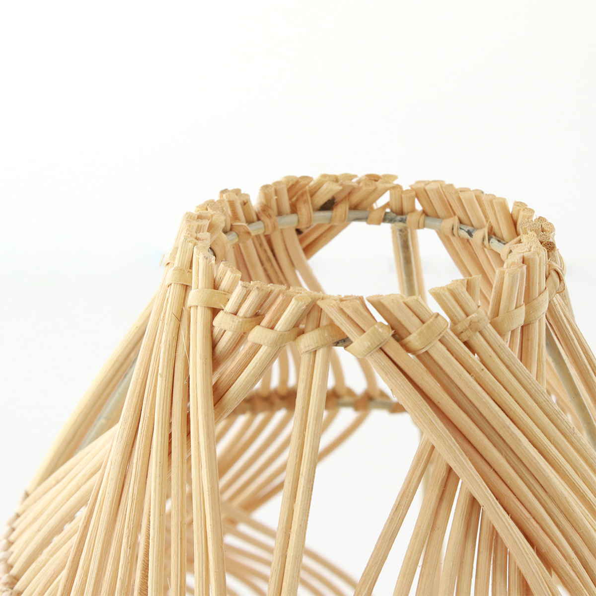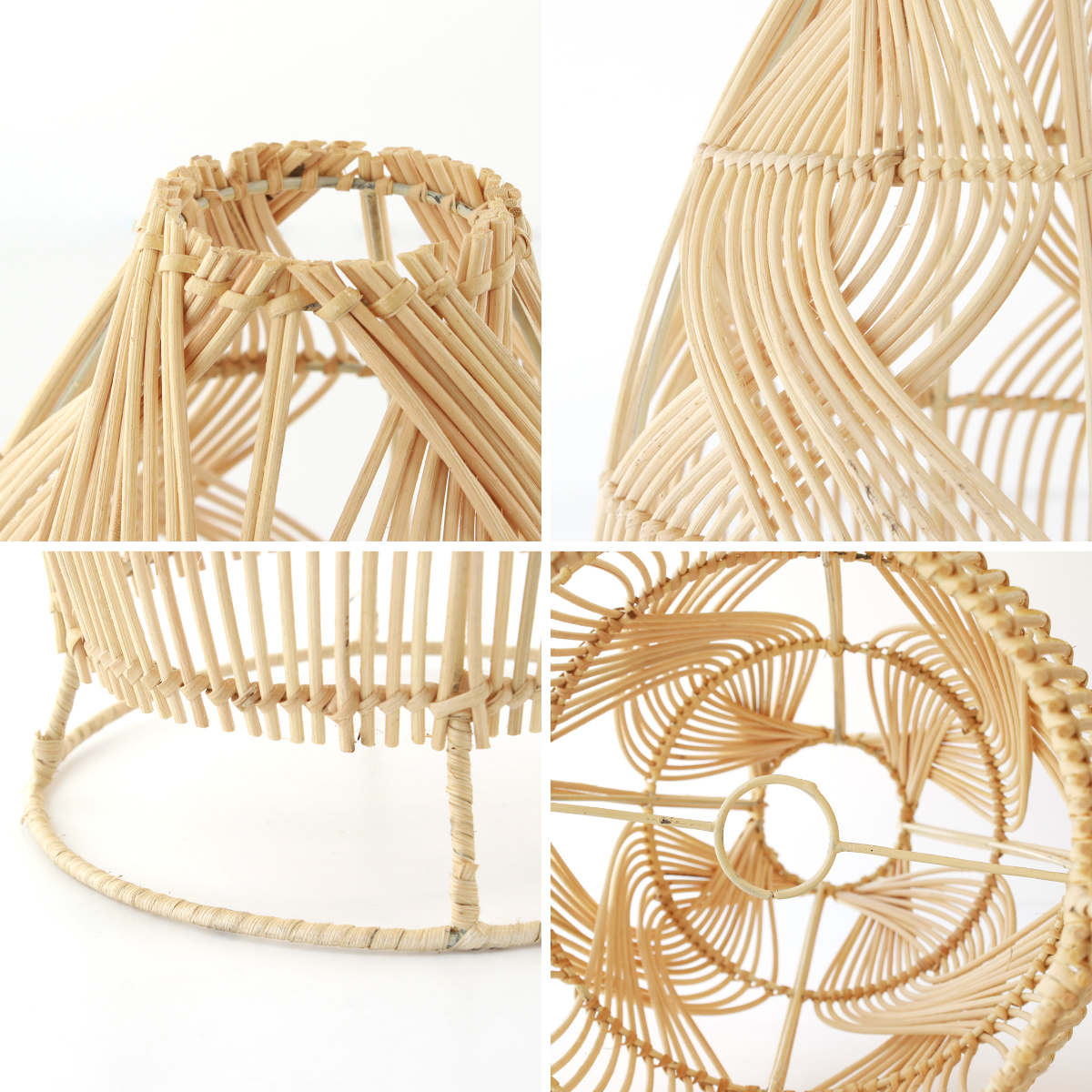 ツイストして編まれたデザインが美しく、ライトをつけていないときもオブジェとしてお楽しみいただけます。天然素材のラタンは自然な風合いがあり、観葉植物との相性も抜群です。