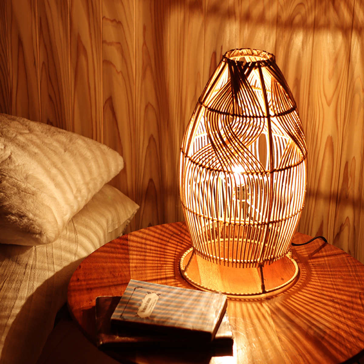手仕事の温もりを感じる、ラタンで編まれたスタンドランプです。アジアンテイストのインテリアはもちろん、和モダンなお部屋やナチュラルな雰囲気にもマッチします。網目から漏れる柔らかな光で幻想的な影が映し出され、癒しの空間をお楽しみいただけます。