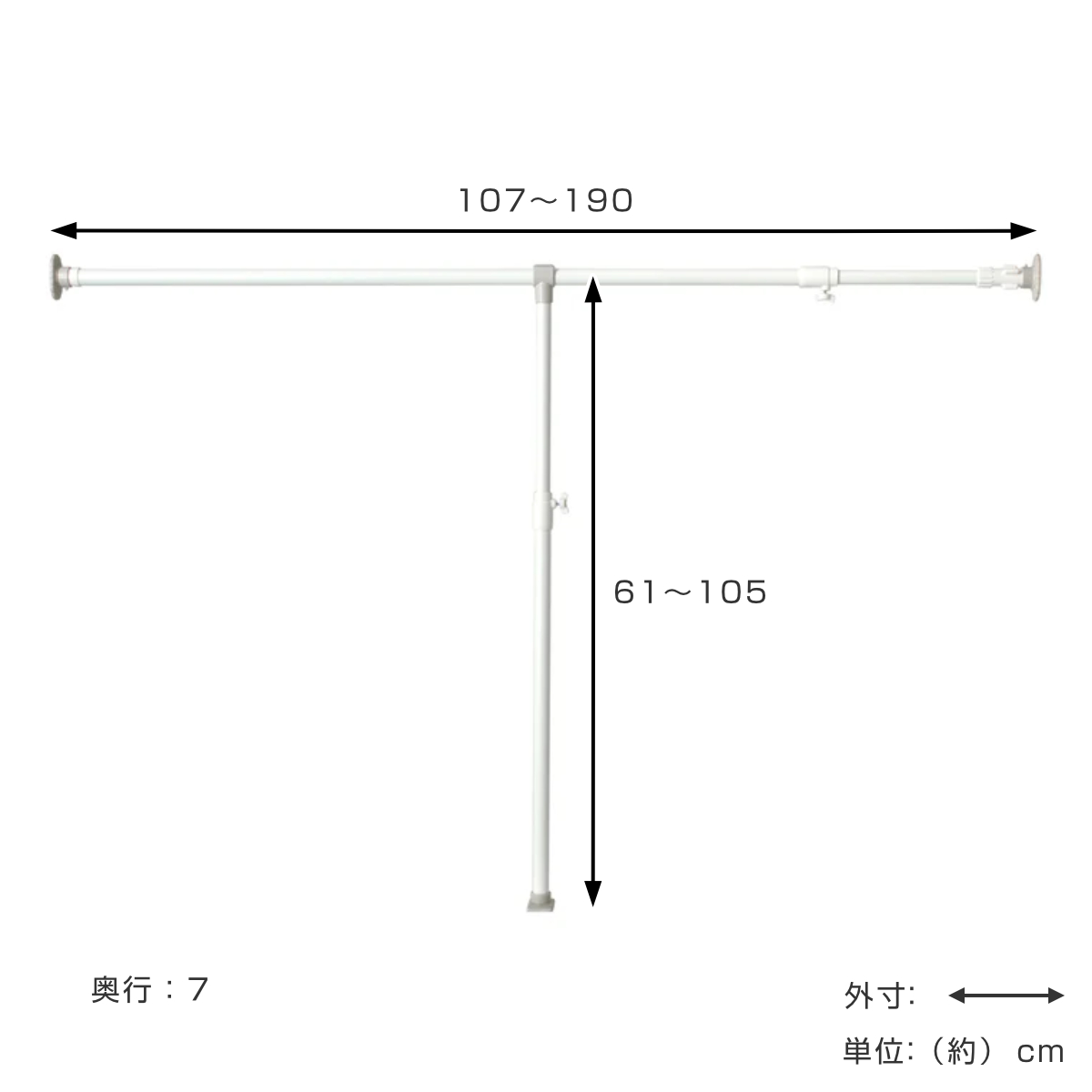 | サイズ | 約 幅107~190×奥行7×高さ61~105(cm) 取付範囲:約 幅107~190(cm) |