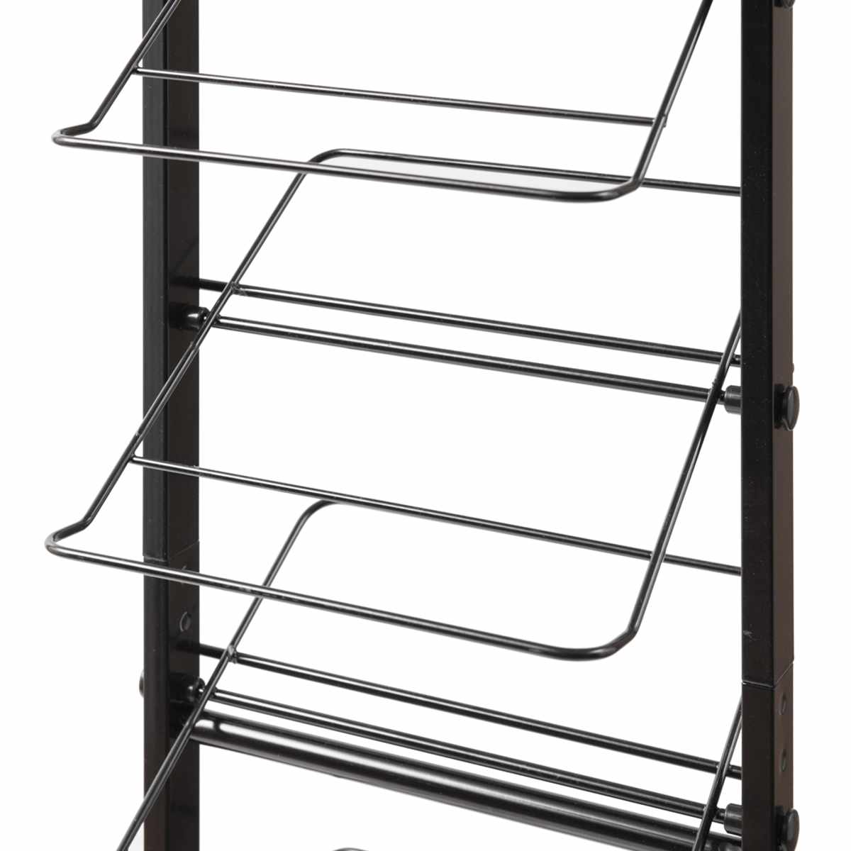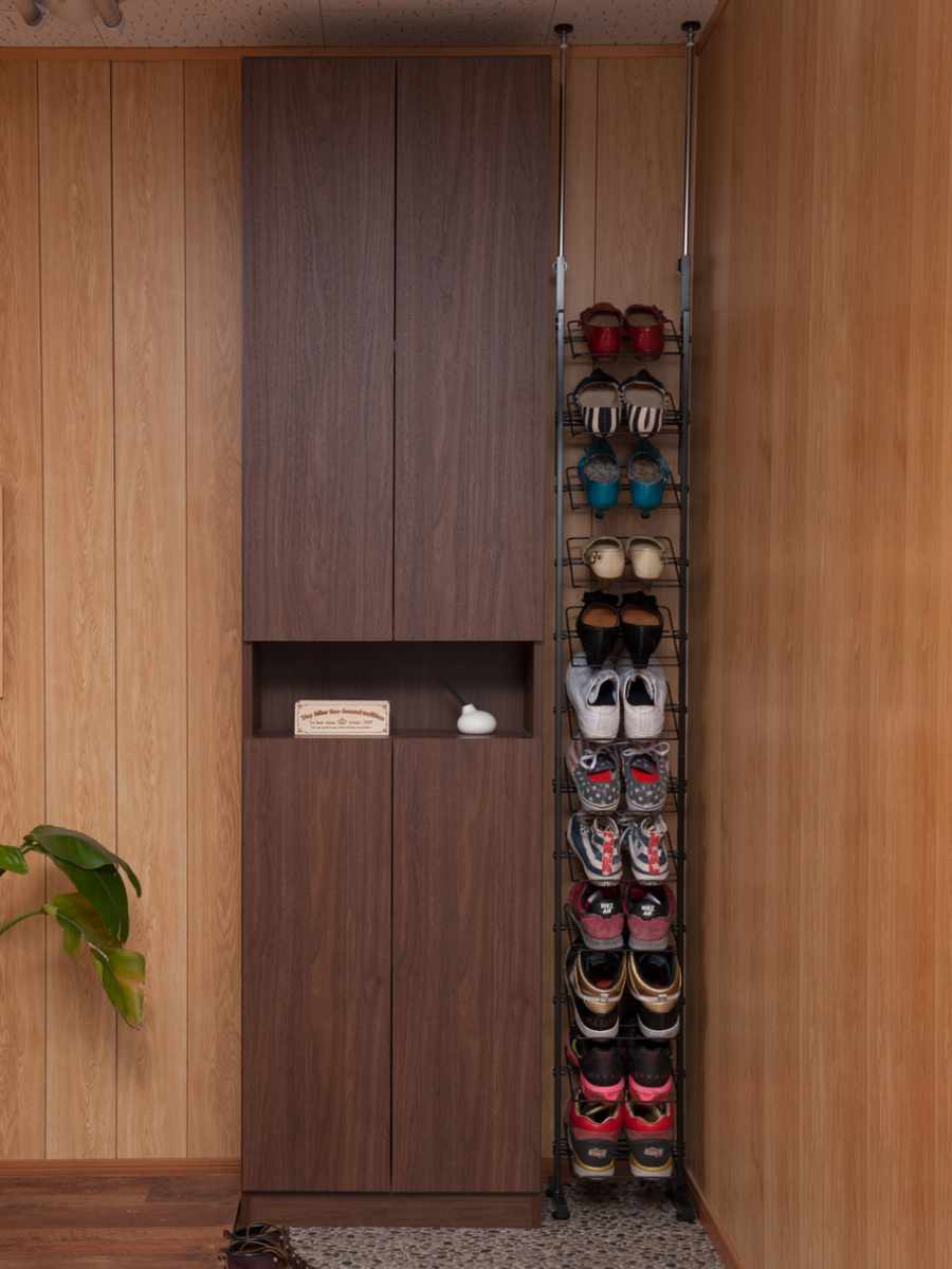 ぺったんこのシューズはもちろん、ワイヤー部分にヒール部分が引っかかるのでハイヒールでも収納できます。棚板を外せば背の高いブーツや長靴も収納可能です。