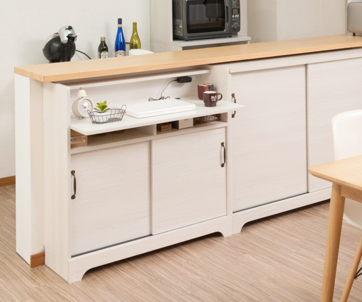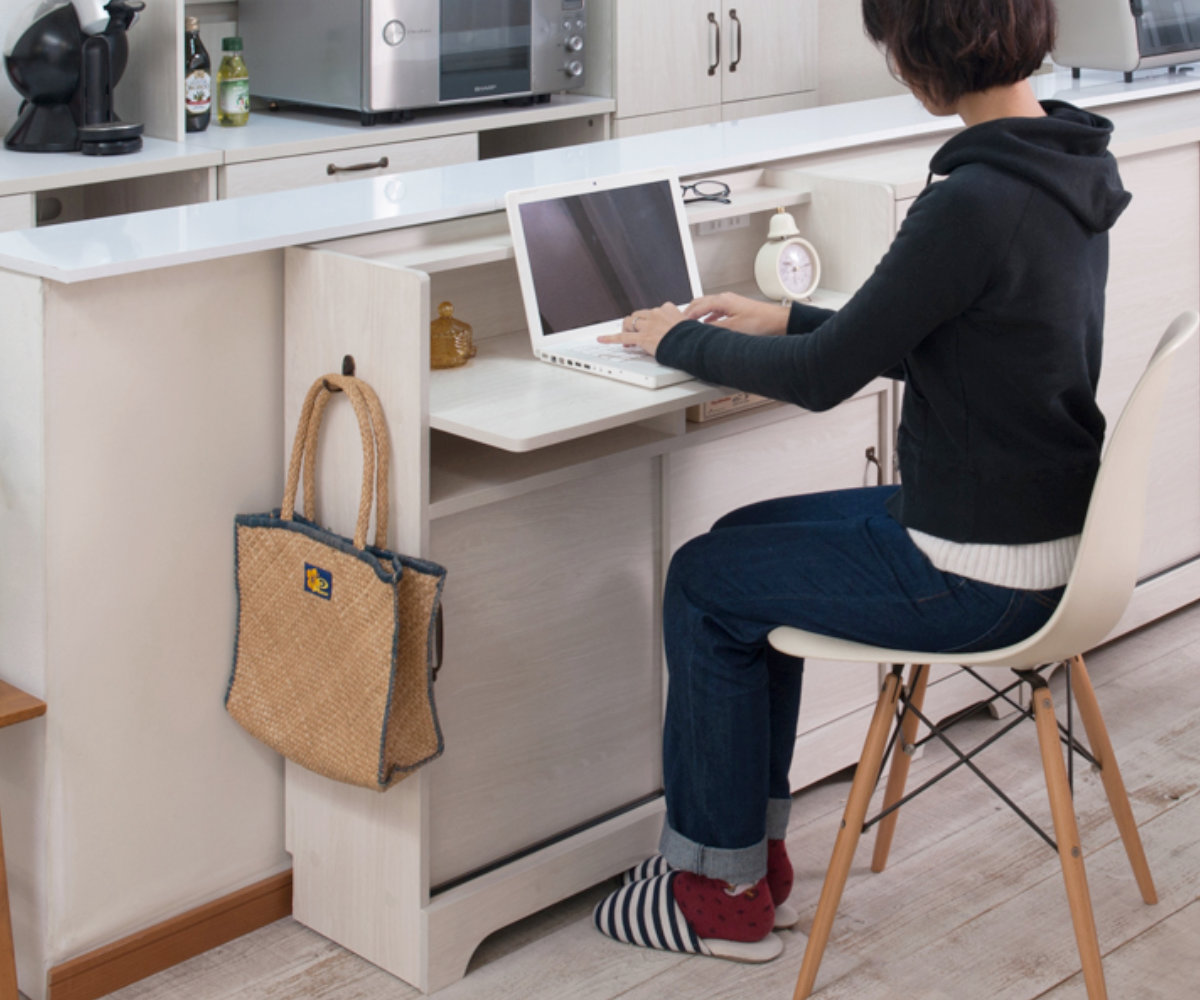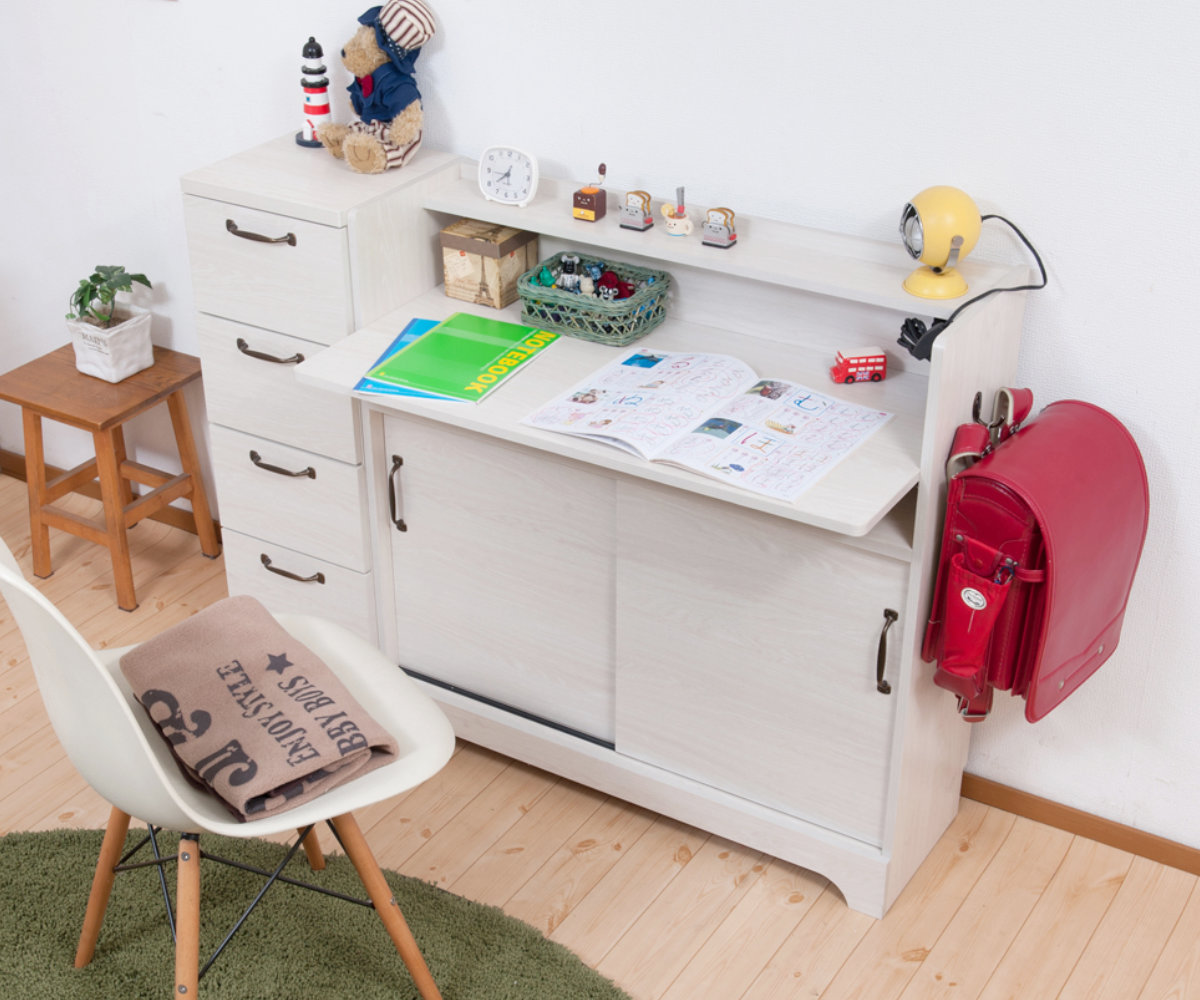 スリムな奥行でスッキリとしたつくりなので、リビングや子供部屋にも圧迫感なく設置できます。お子様の勉強机として、また大人のワークスペースとしてもお使いいただけます。カウンター下に設置すれば、お料理をしながらお子様の勉強を見守ることもできます。