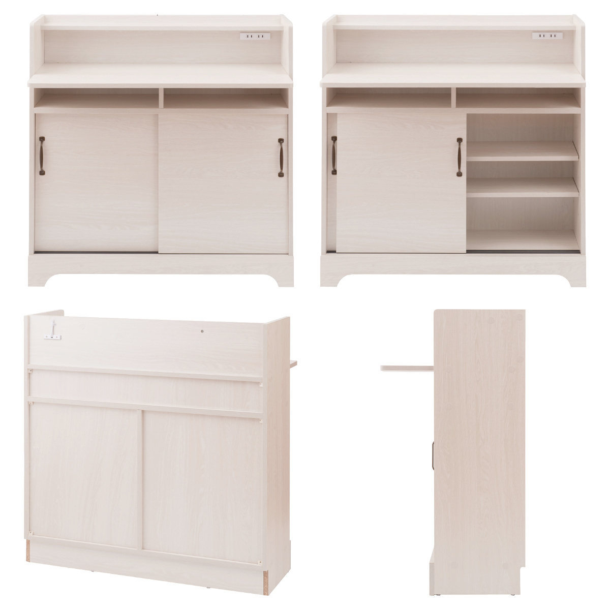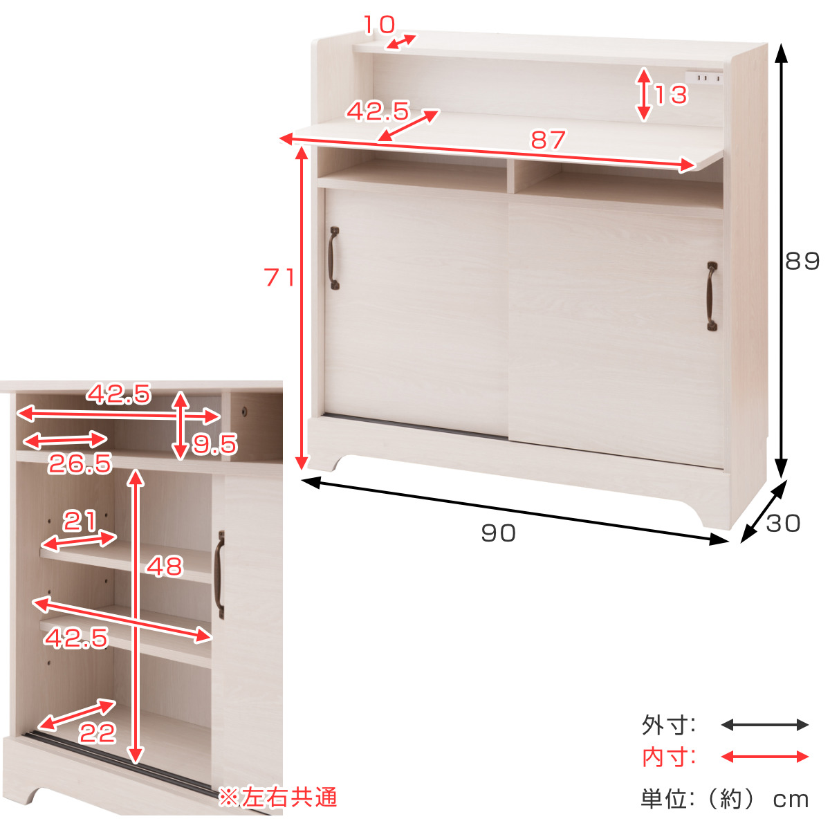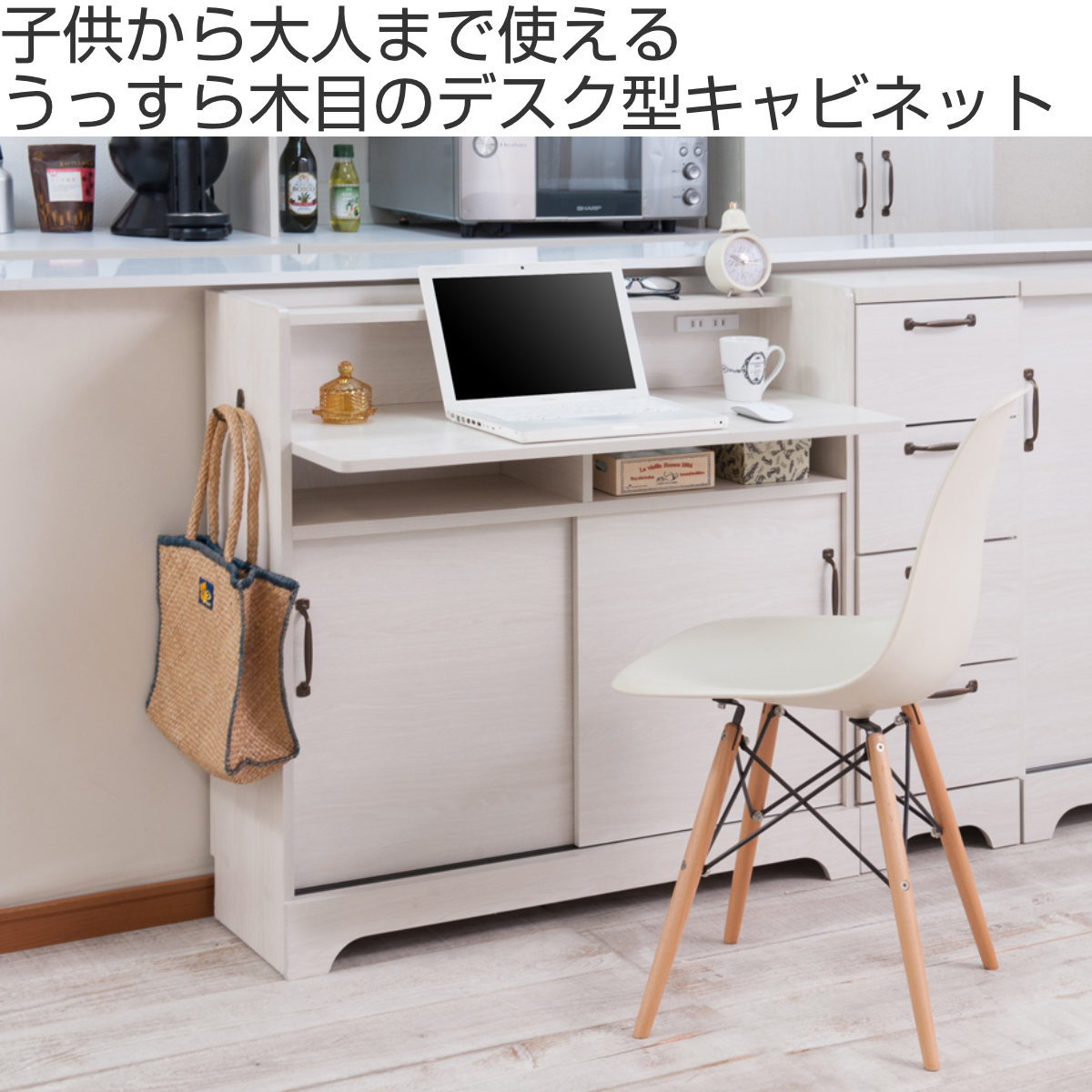 カウンター下収納 デスクキャビネット 幅90cm 2口コンセント フック付 ホワイト木目 ( Late ラテ カウンター下 収納 可動棚 コンセント付 デスク キャビネット 机 ラック 棚 リビング ホワイト 白 )