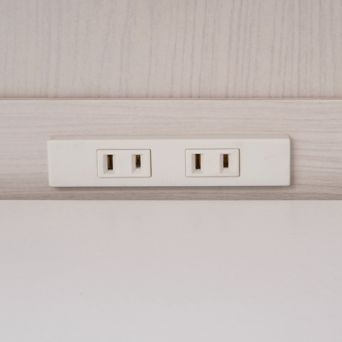 家電製品をどこに設置しても使いやすいように2か所にコンセントを配置しているため、配線がスムーズです。また、ボードの背板には熱がこもらないように逃がし空間があります。