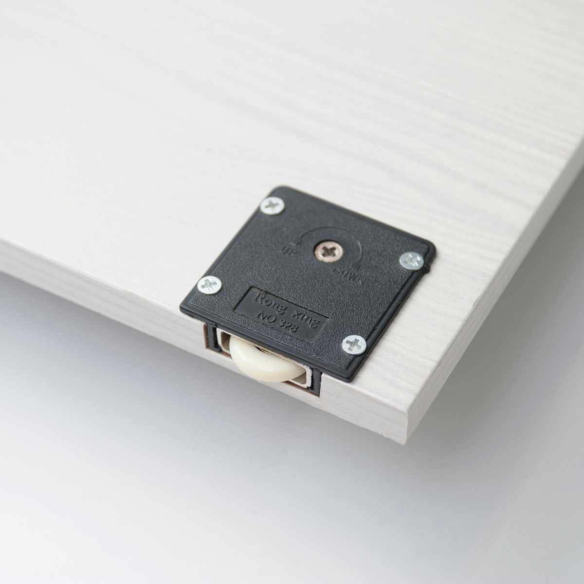 | 安心の棚受け 棚受けはネジ式ダボなので、一度はめると取れなくなったり、スポッと取れて棚板が落ちる心配もありません。 | 滑車付き扉で開閉楽々 扉には滑車が付いているので、開閉がスムーズにできます。 |
