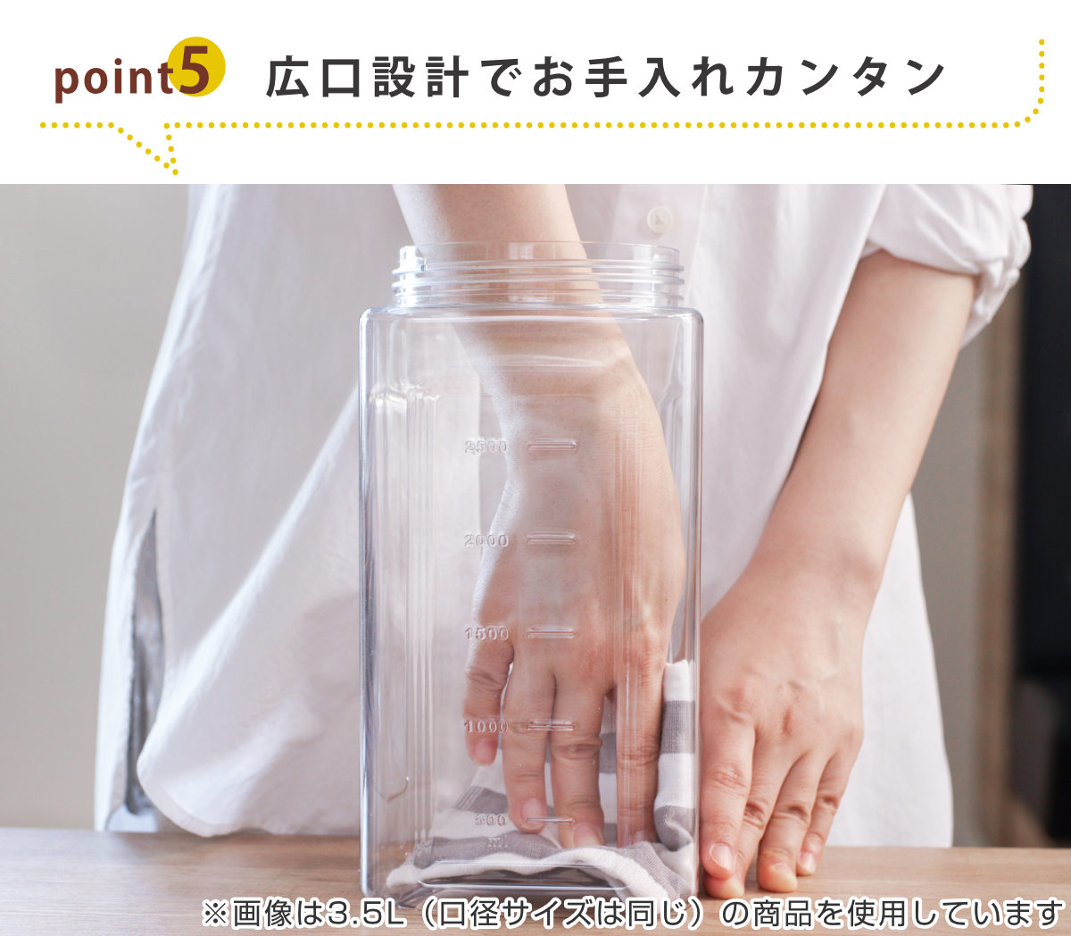 毎日使うポットはお手入れがしやすいのもポイント。ぐっと手を入れて底までしっかり洗えるので清潔に使えます。