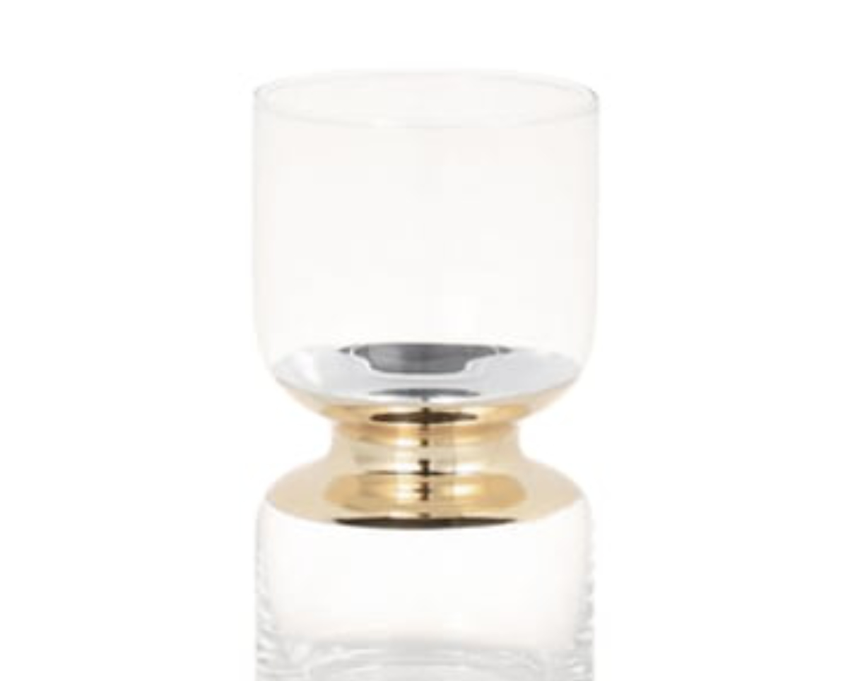 シェイプされた部分のカラーリングが、世にも素敵な錯覚をもたらす不思議なガラスベースです。まるで上下が仕切られているかの様なデザインですが、実はひと続きの花瓶。キャンドルをレイアウトしたり、水中花の様な雰囲気で遊んだり。と、水・キャンドル・花で、簡単に難易度の高い演出が楽しめます。