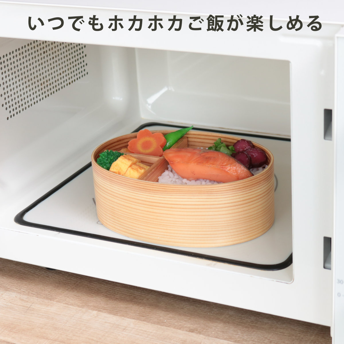 ※500W 30秒(~様子を見て60秒まで加熱可能)で、いつでも温かいランチを楽しめます。