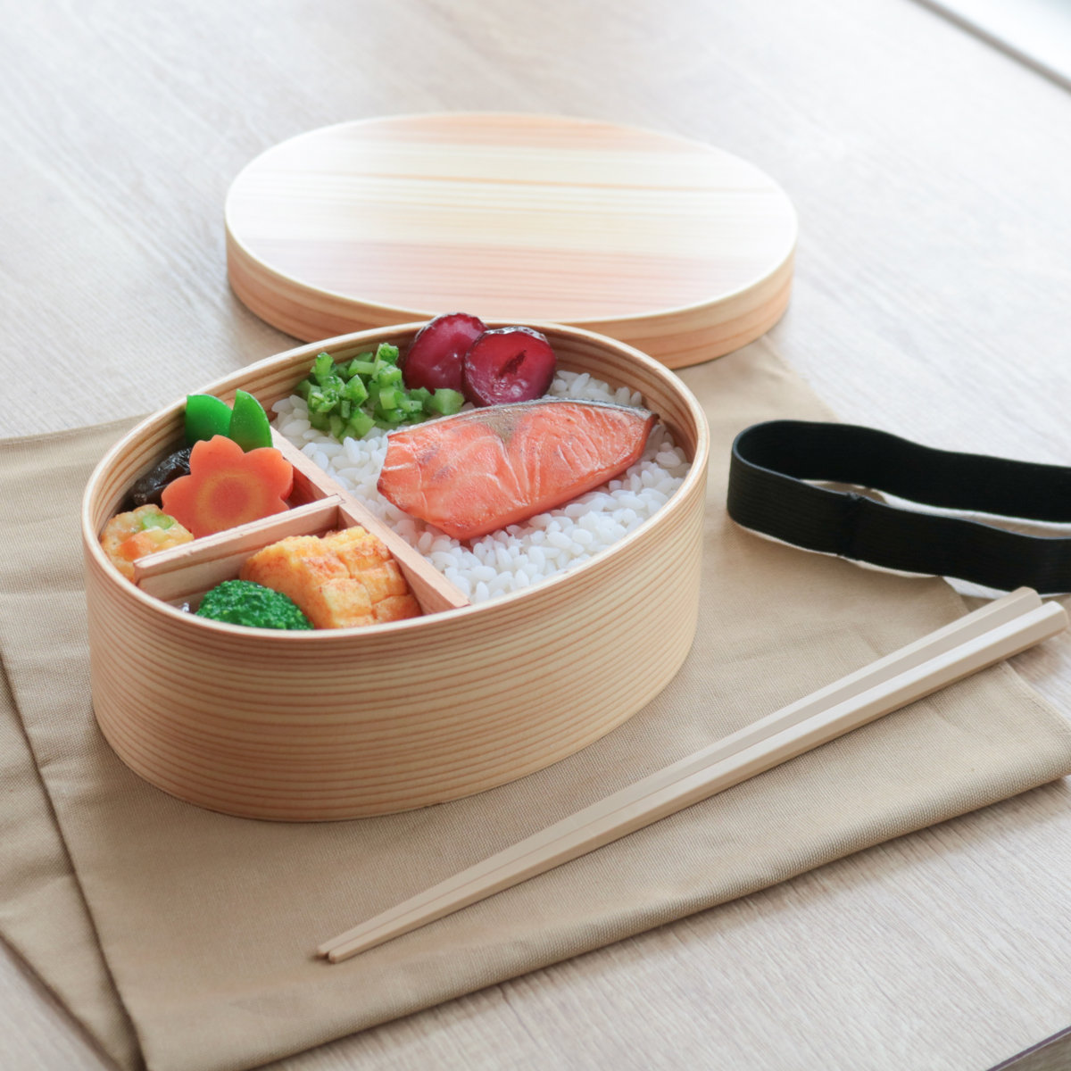 木製ならではの良さはそのままに、現代のライフスタイルに合わせて進化した、まさに理想の曲げわっぱお弁当箱です。