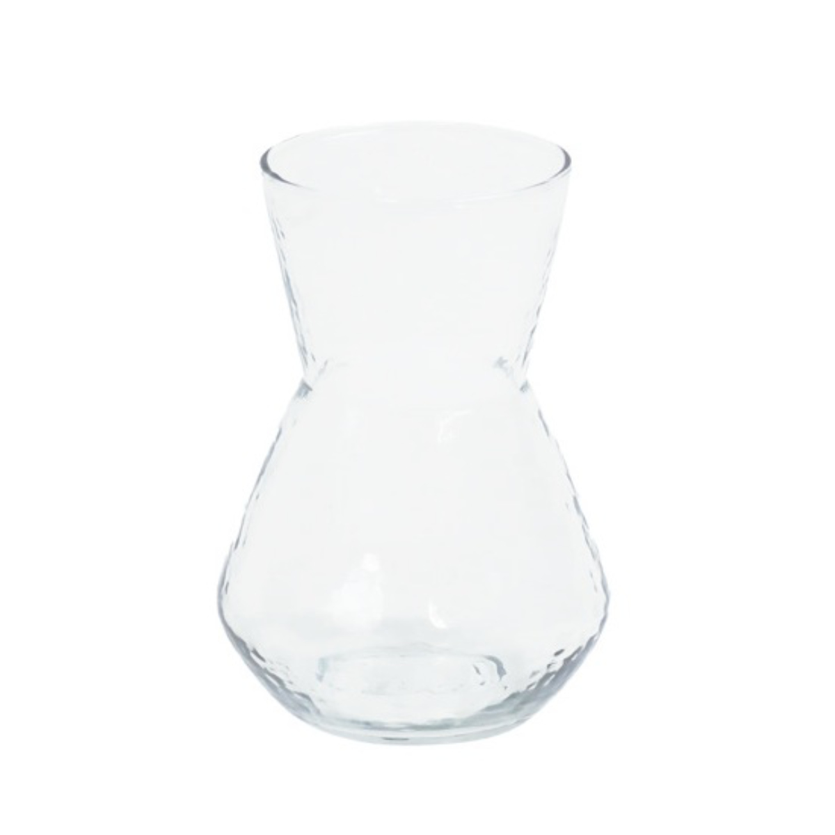 ガラス表面に入った凹凸のテクスチャーが特徴のフラワーベース Sサイズです。シンプルでありながら、どこか特別感を漂わせるフォルムと、凸凹のあるガラスが光を受けてきらめくたび、花瓶そのものが空間に華やかさをもたらします。