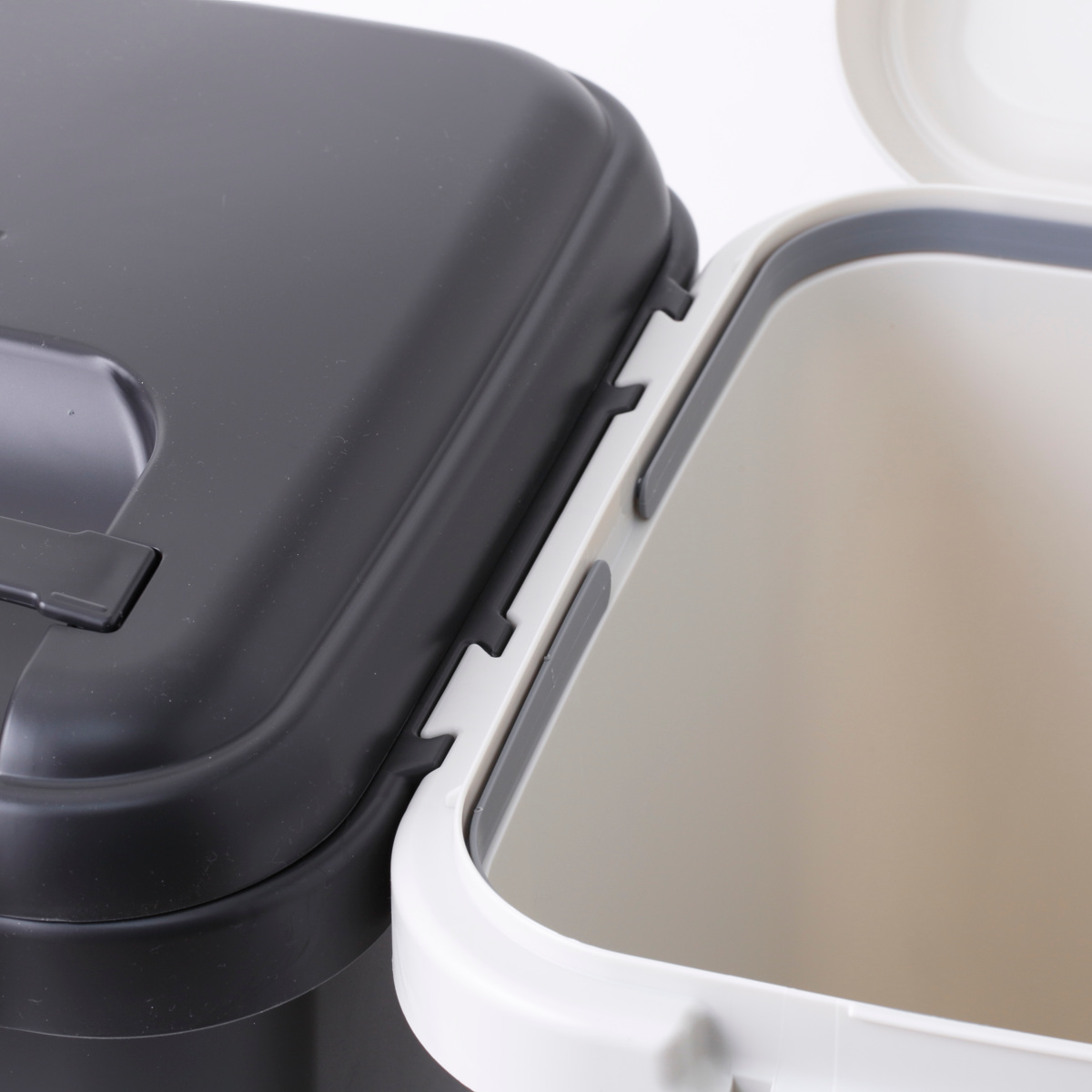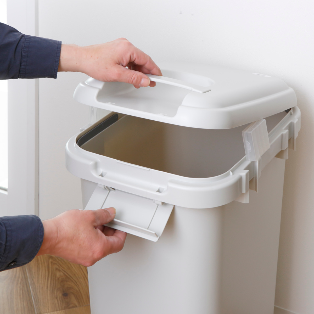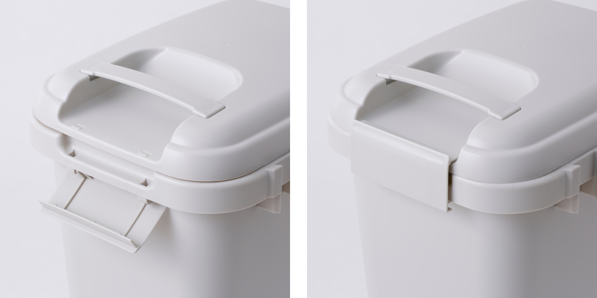 ふた上部のハンドルで開閉しやすいです。ロック機能でゴミ箱が開かないように、ふたを固定できます。