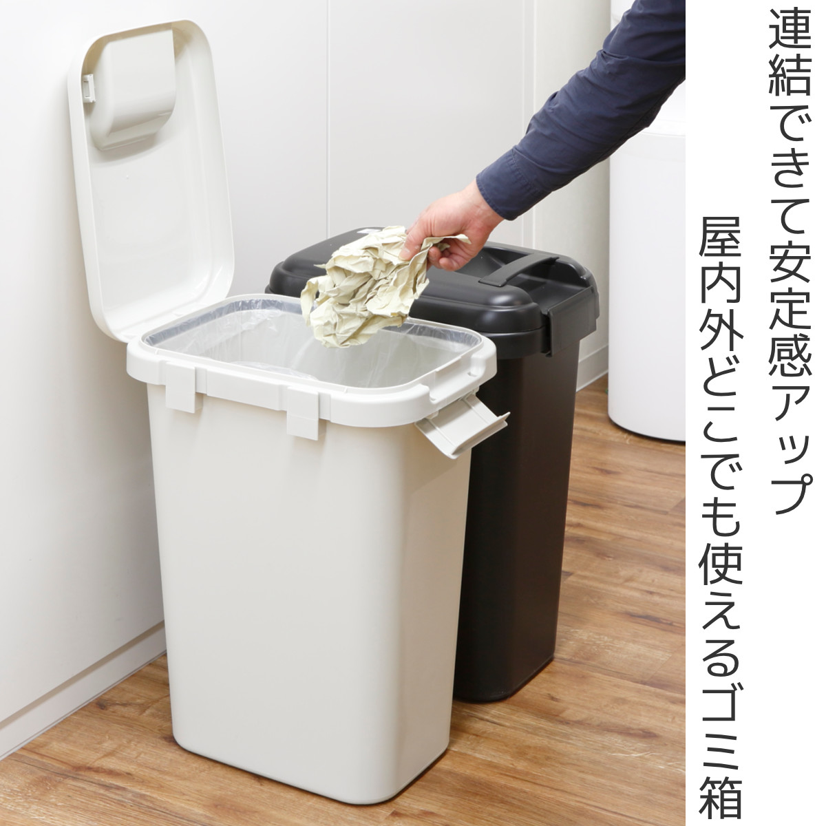 側面の凹凸をはめ込んでゴミ箱同士を連結できます。連結することで倒れにくくなり、きちんとキレイに並べられます。色違いで並べれば、一目で分かりやすい分別ゴミ箱としてもオススメです。