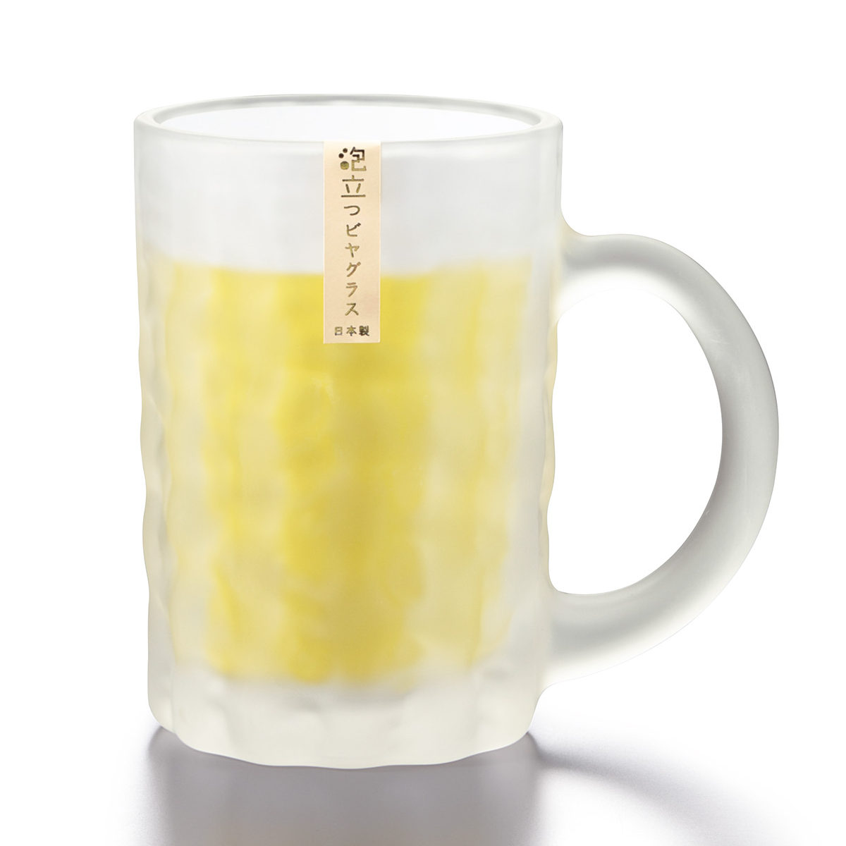 注ぐだけでクリーミーな泡が立つビヤグラスです。グラス内面がすりガラス状の凹凸によってほどよい泡が立ち、美味しいビールを愉しむことができます。食洗機対応でお手入れが簡単だから毎日気兼ねなく使えます。