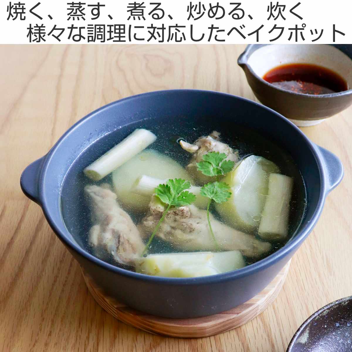 耐火黒土製のシンプルでスタイリッシュなデザインで食器としても使いやすいオールマイティな型です。フタには持ち手がついていて、食べ残した際にはフタをして衛生的です。