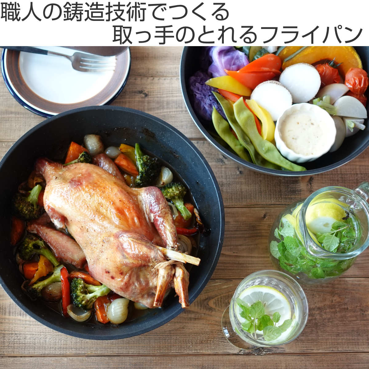 調理後は取っ手を外してそのまま食卓へ