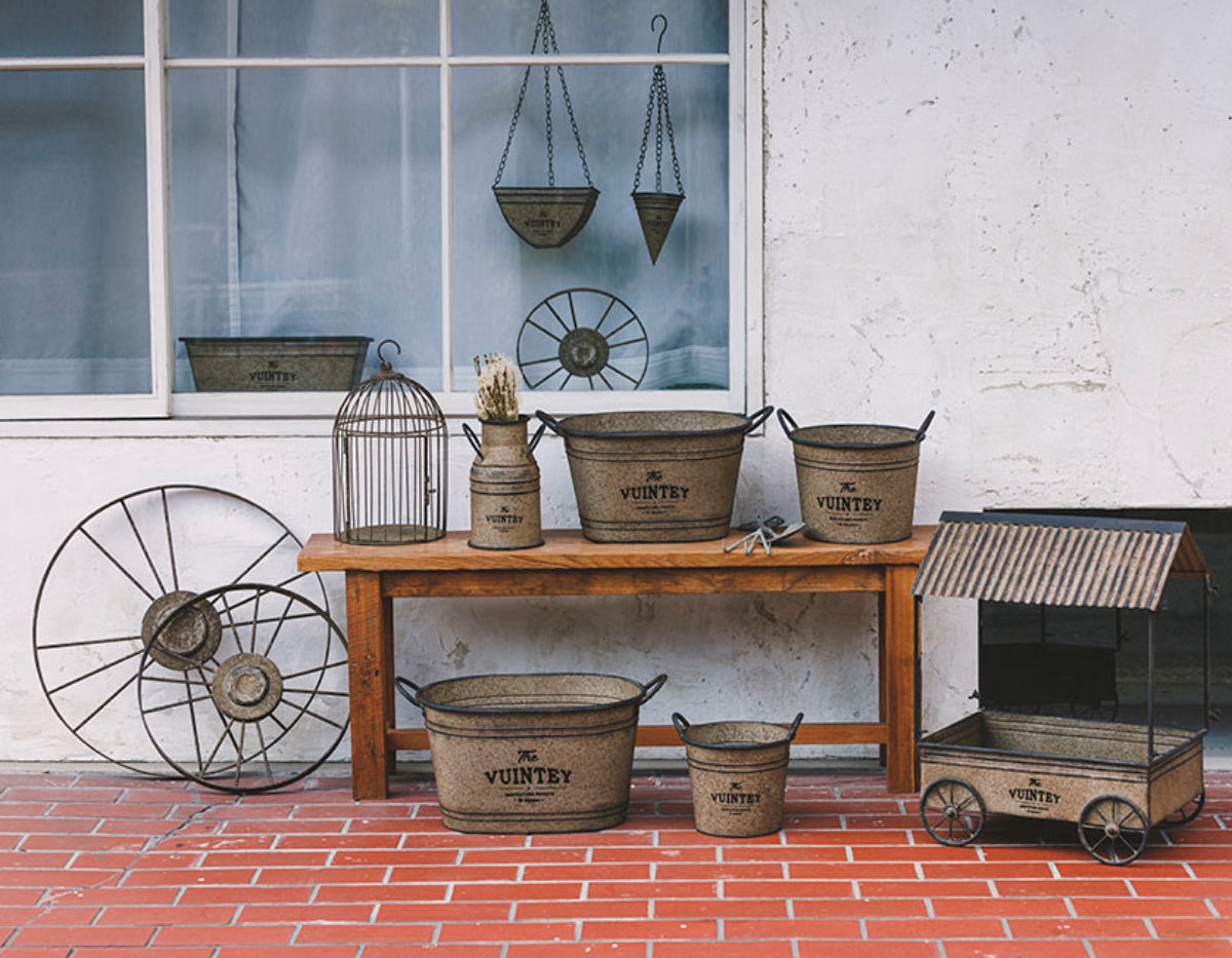 「ヴィンティー」シリーズを、ひとつ飾るだけでお庭やインテリアの印象をガラッと変えてくれますが、同シリーズやサイズ違いで揃えて頂くことでより一層ガーデニングをお楽しみいただけます。