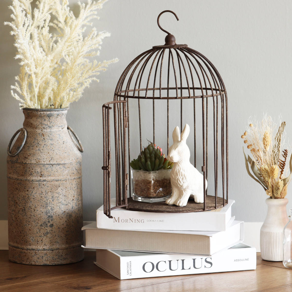 バードケージのトップはフック状になっているので、 ハンギング用のバーやポールに掛けて飾ることもできます。