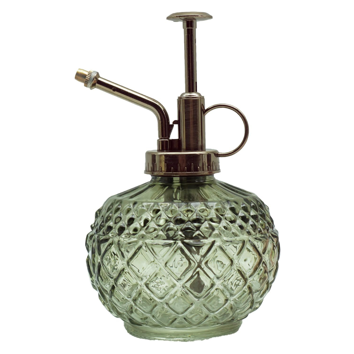 霧吹き ガラススプレイヤー クロス ( ガラス スプレー ミストボトル スプレーボトル ガラス製 霧ふき 霧吹 おしゃれ ガーデニング 観葉植物 ディスプレイ お手入れ 250ミリ 水やり アンティーク調 ) 【グリーン】