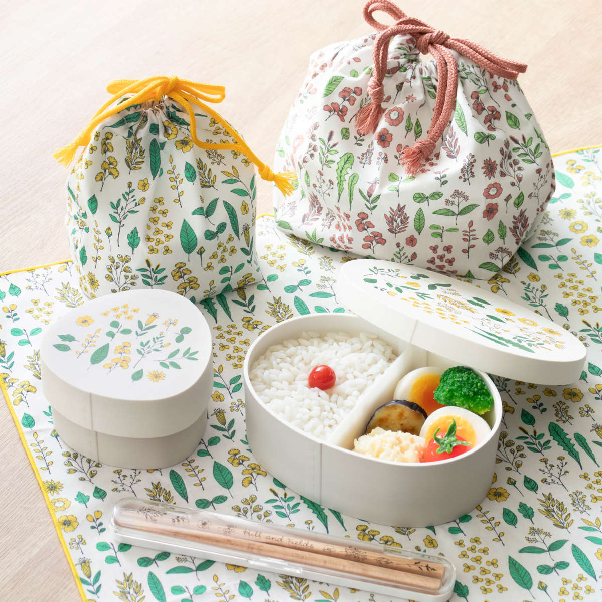「わっぱ風」デザインと花々や草木をモチーフに線画風イラストが魅力のおにぎりケースです。花々や草木をモチーフにした線が風のイラストと甘くないカラーリングで、ランチタイムを華やかに演出してくれます。
