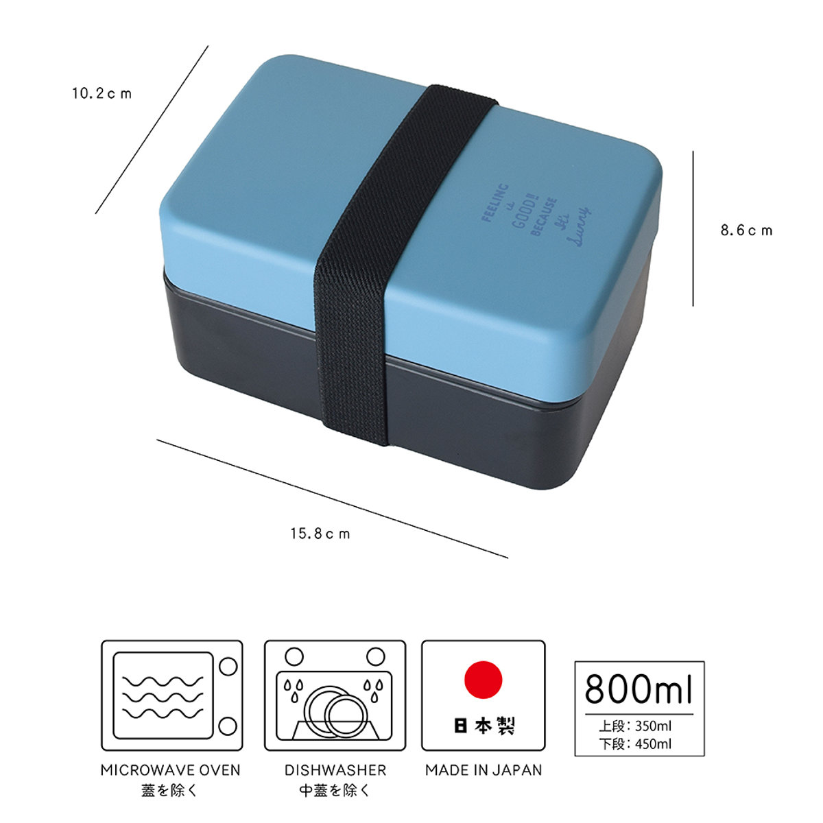 弁当箱 800ml FIG 塗2段ランチボックス ( お弁当箱 ランチボックス 食洗機対応 レンジ対応 バンド付 2段 日本製 レンジOK 食洗機OK シンプル 二段 二段弁当箱 弁当 お弁当 ランチベルト付き シール蓋 ) 【グレー】