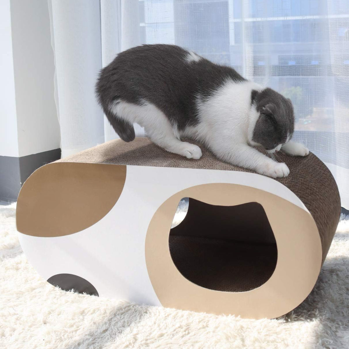 上にも内側にも爪とぎ機能があるため、広い範囲で爪とぎを楽しめます。トンネルの中に入れば隠れながら爪を研ぐこともできます。