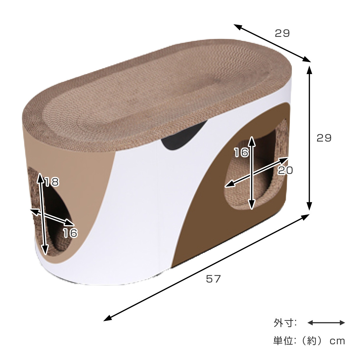 上にも内側にも爪とぎ機能があるため、遊びと爪とぎを同時に楽しめます。トンネルの中に入れば隠れながら爪を研ぐこともできます。