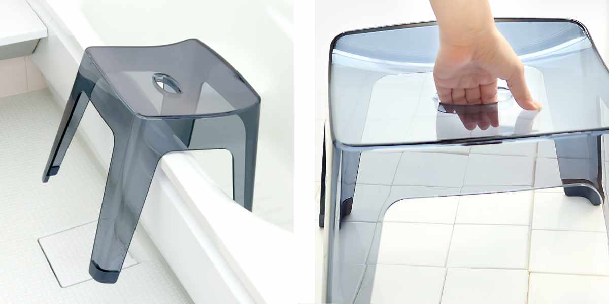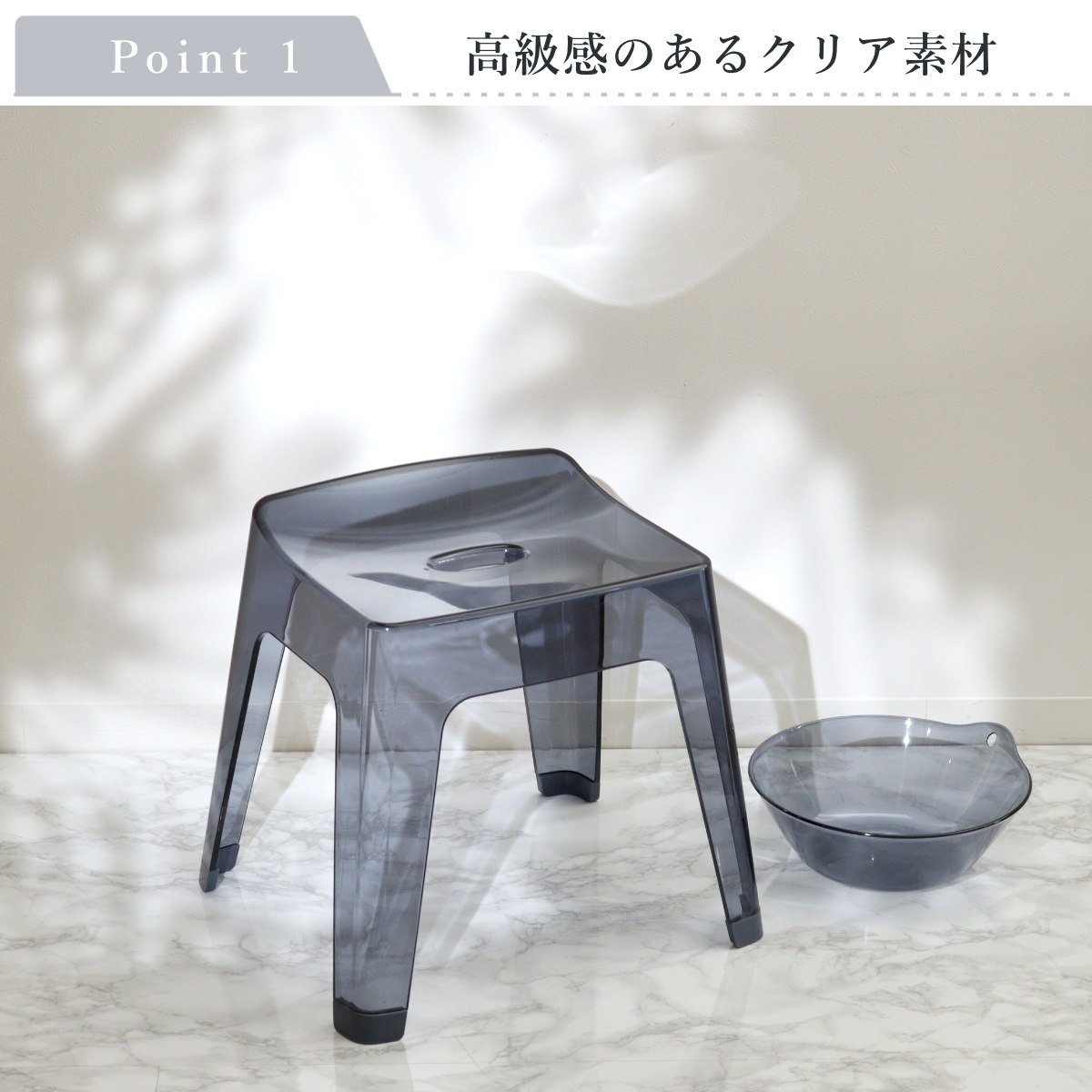 透明感が美しく、座面が広くて座りやすい風呂椅子です。心までキレイになりそうなクリア素材が、バスルームに開放感と上質感をプラスします。シンプルながら洗練されたデザインで、毎日のバスタイムを特別な時間に変えます。