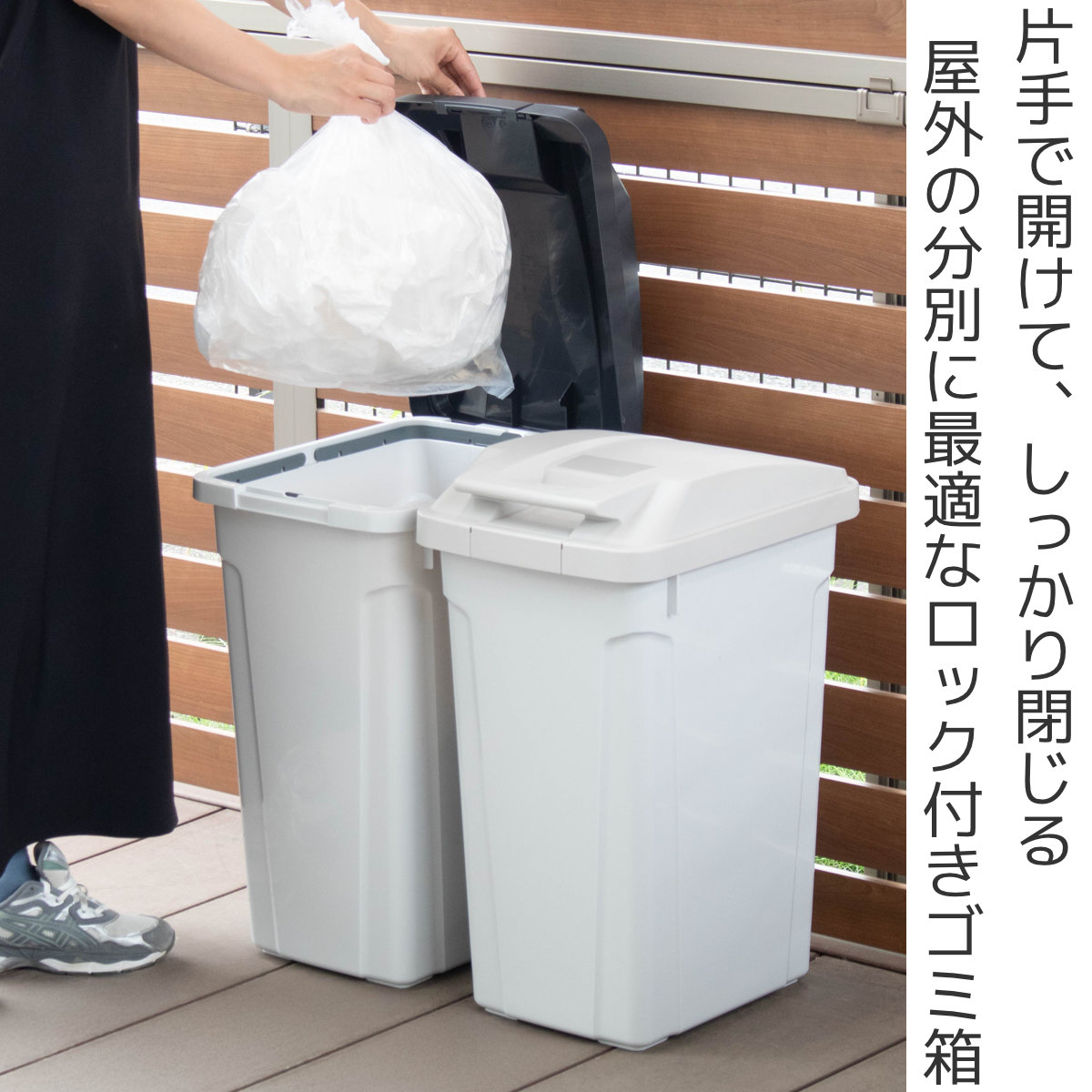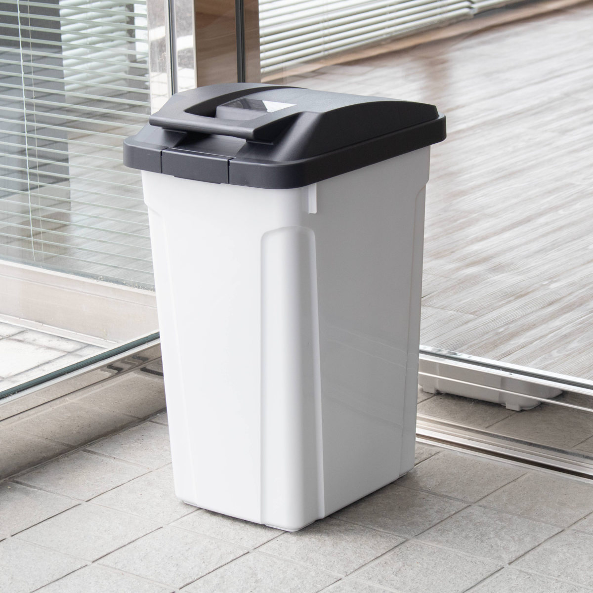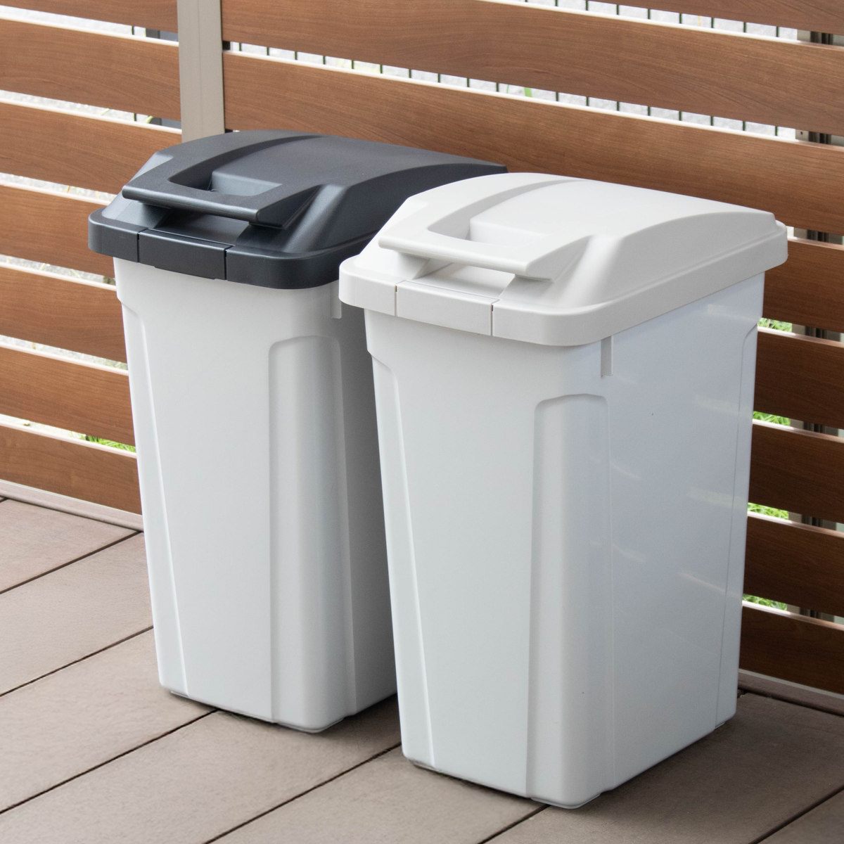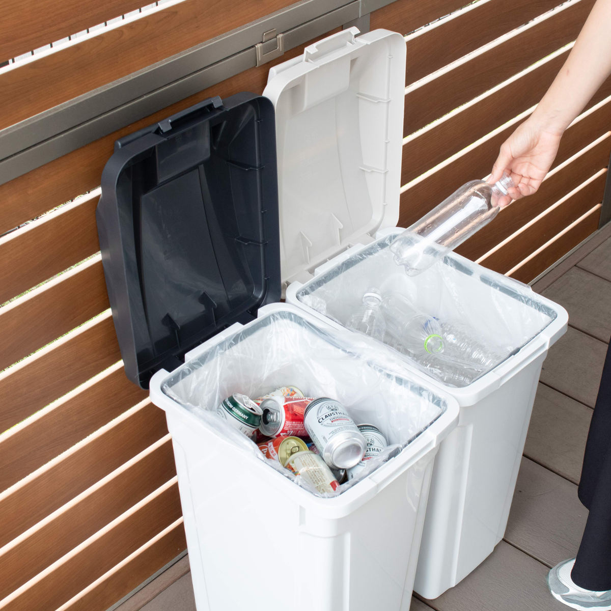ベランダやキッチンに置きやすいサイズ感です。ペットボトルなどの資源ゴミや庭掃除で集めた枯葉など、ゴミ収集日までの一時保管に便利です。