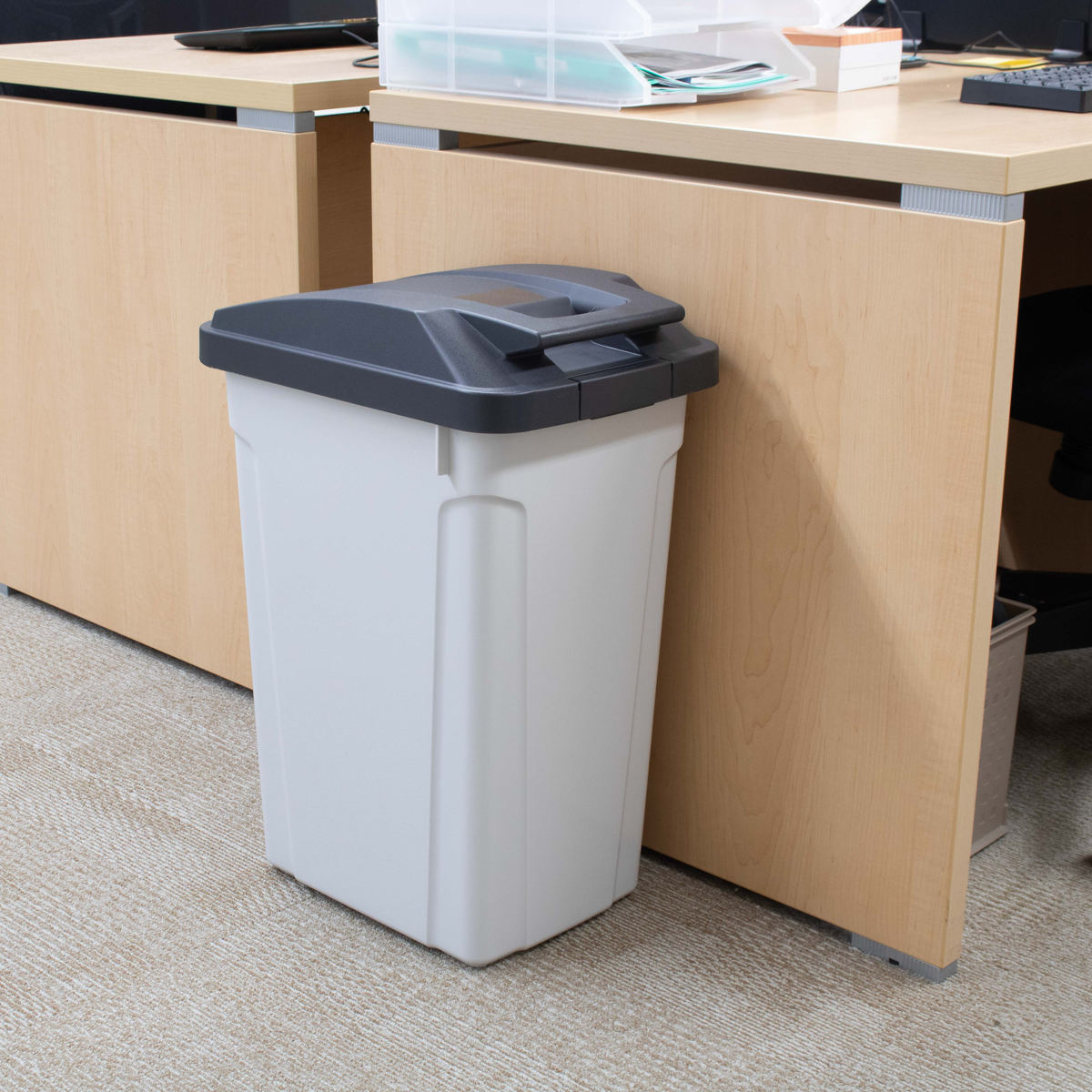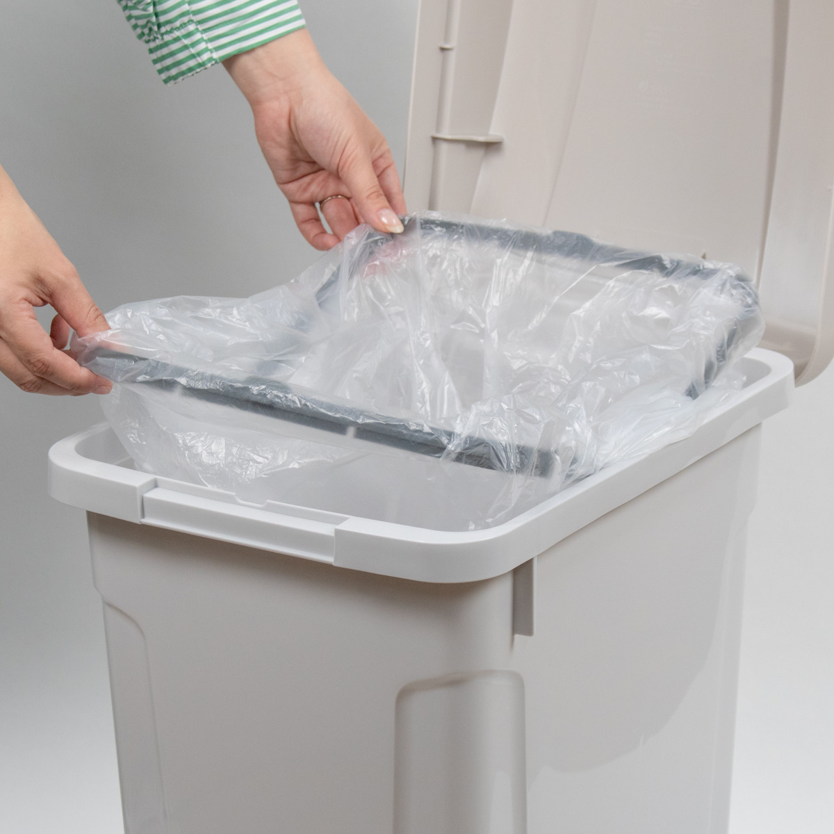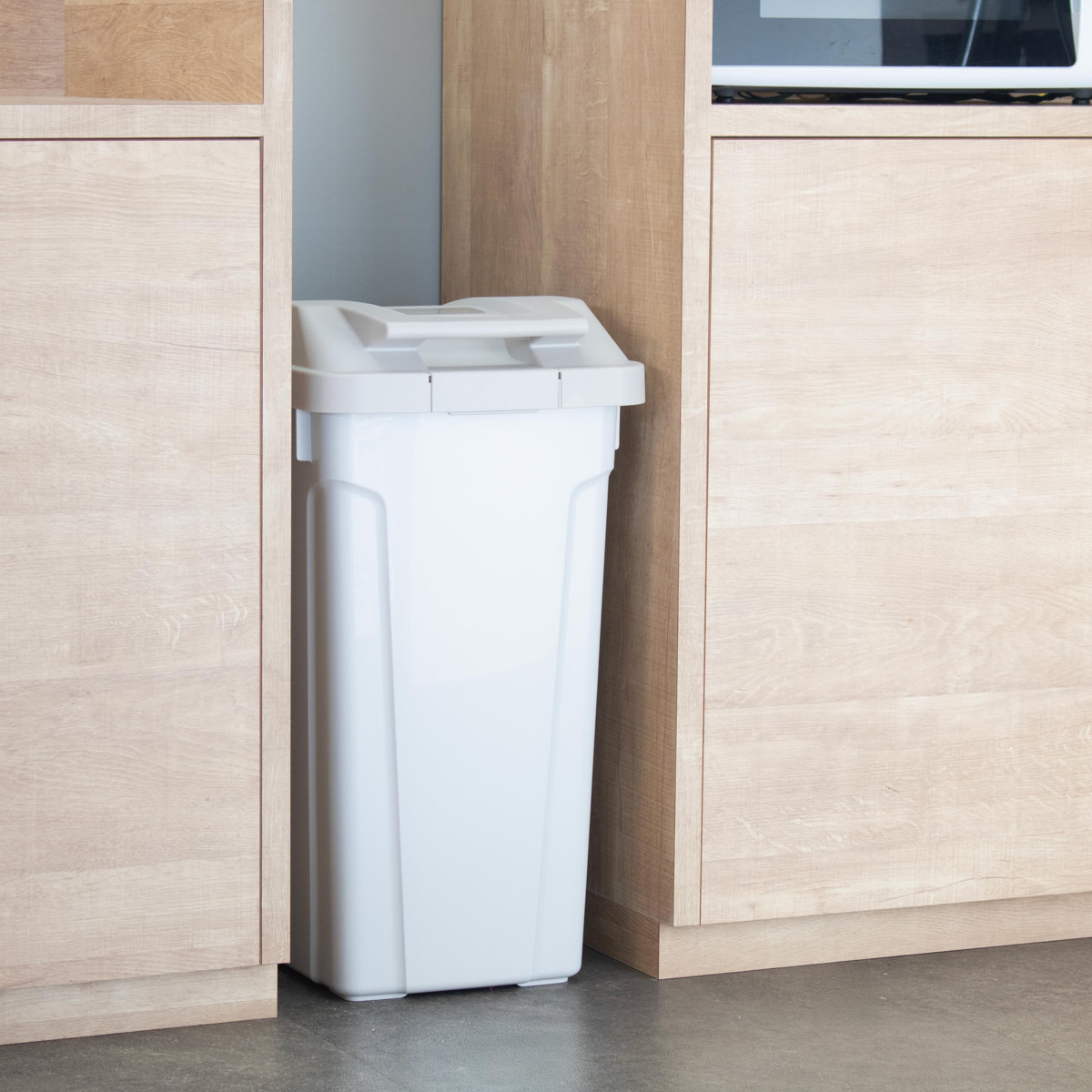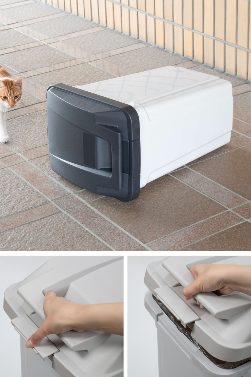 ベランダやキッチンに置きやすいサイズ感です。ペットボトルなどの資源ゴミや庭掃除で集めた枯葉など、ゴミ収集日までの一時保管に便利です。