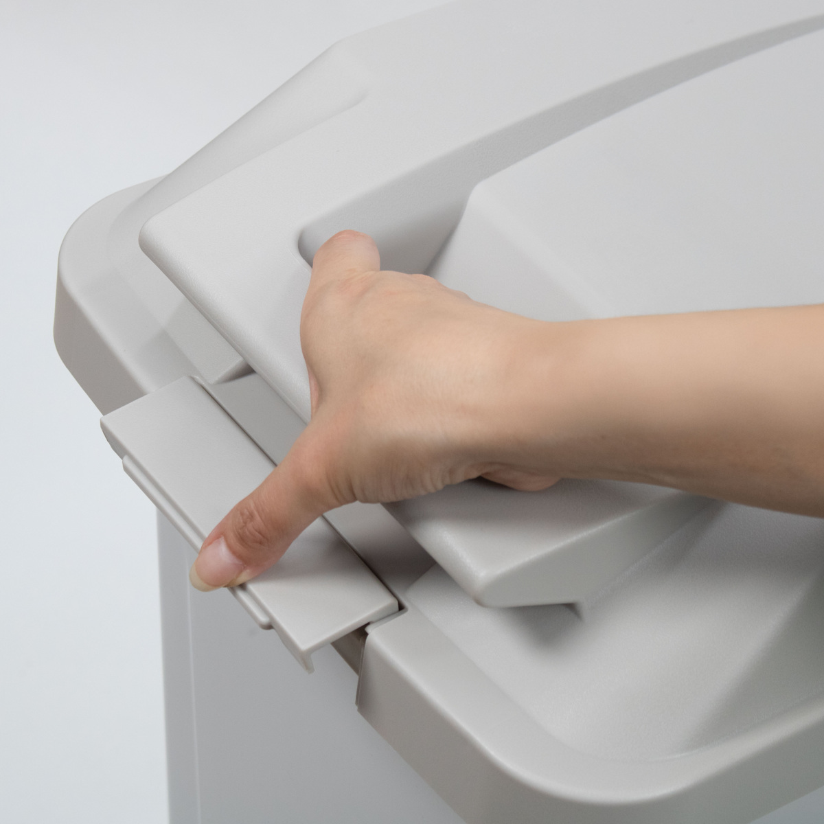 ふたは開かないようにロックできるので、猫やカラスのイタズラも怖くありません。ゴミ箱が倒れた時も中のゴミがこぼれにくいです。片手でロック解除でき、サッとふたを開けられます。