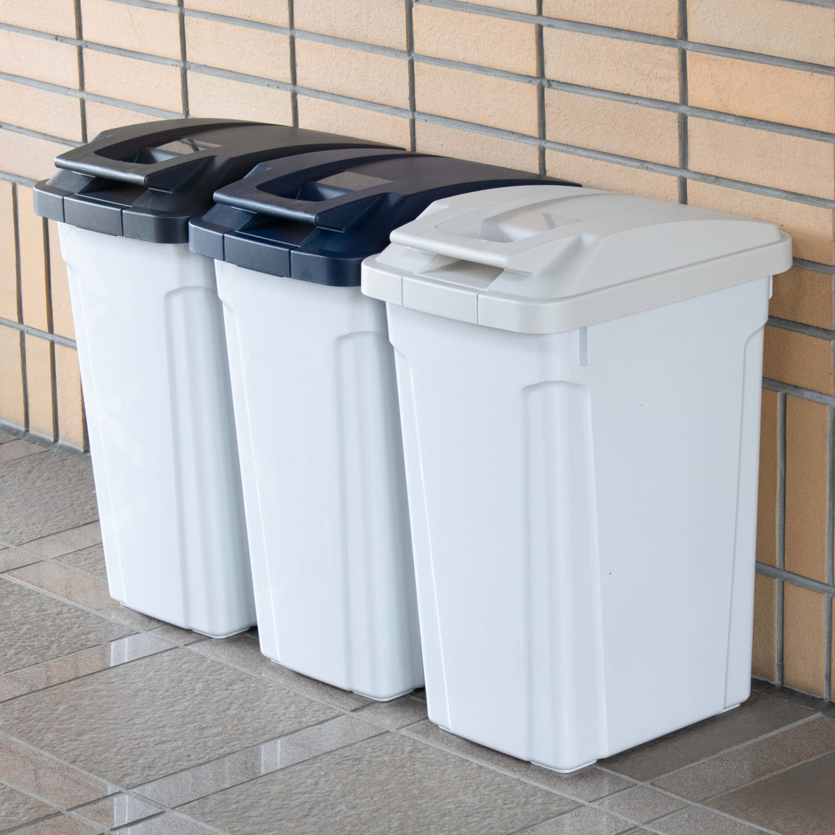 品質と耐久性に優れた日本製で、室内屋外どちらでもお使いいただけます。ふたの色で区別できるので、セット使いで資源ゴミの分別用ストッカーとしてもおすすめです。