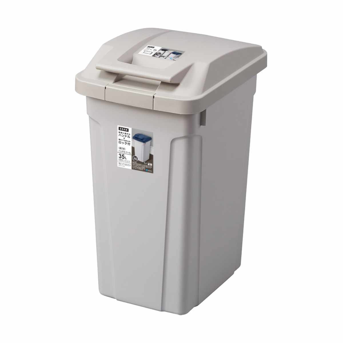 ゴミ箱 35L ハンドル付分別ペール ( ごみ箱 35リットル ふた付き 屋外 ロック機能付き 分別 シンプル 角型 縦型 ブルー ライトグレー ブラック ) 【ライトグレー】