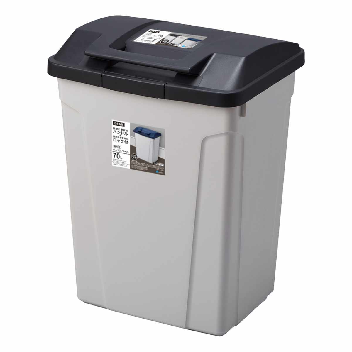 ゴミ箱 70L ハンドル付分別ペール ( ごみ箱 70リットル ふた付き 屋外 ロック機能付き 分別 シンプル 大容量 大きい 角型 縦型 ブルー ライトグレー ) 【ブラック】