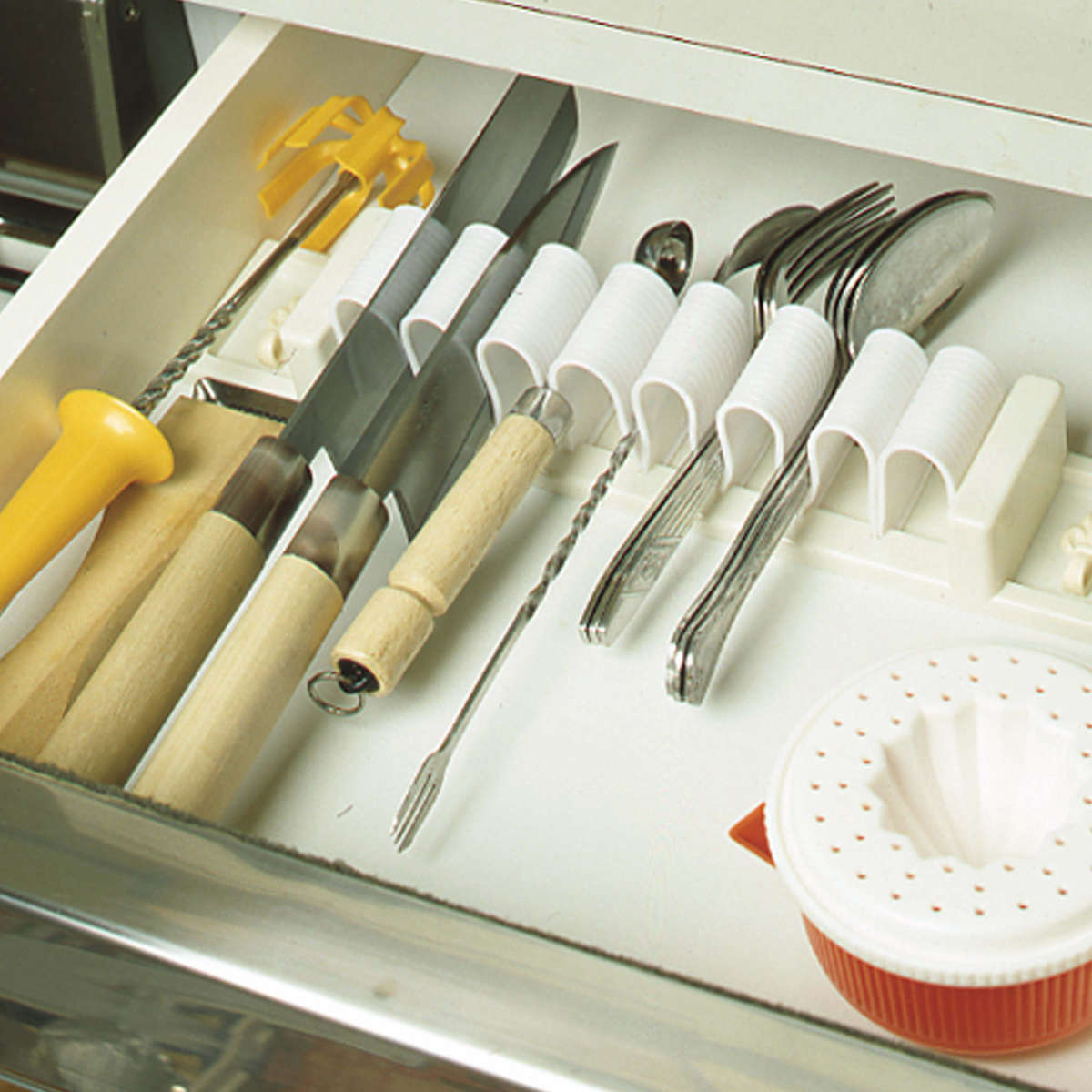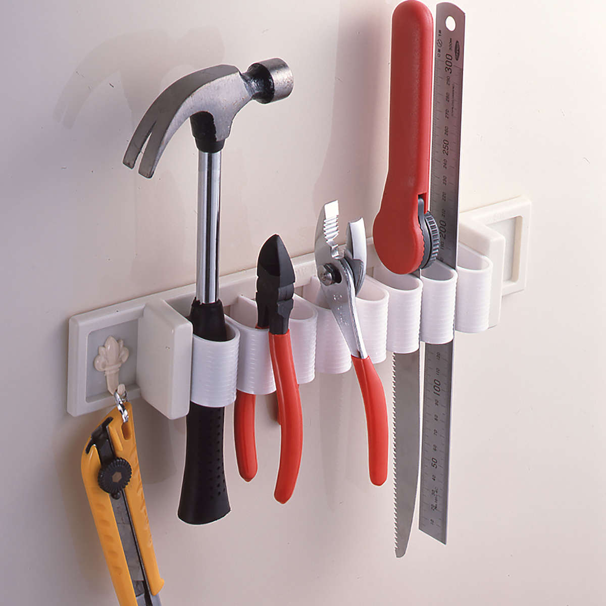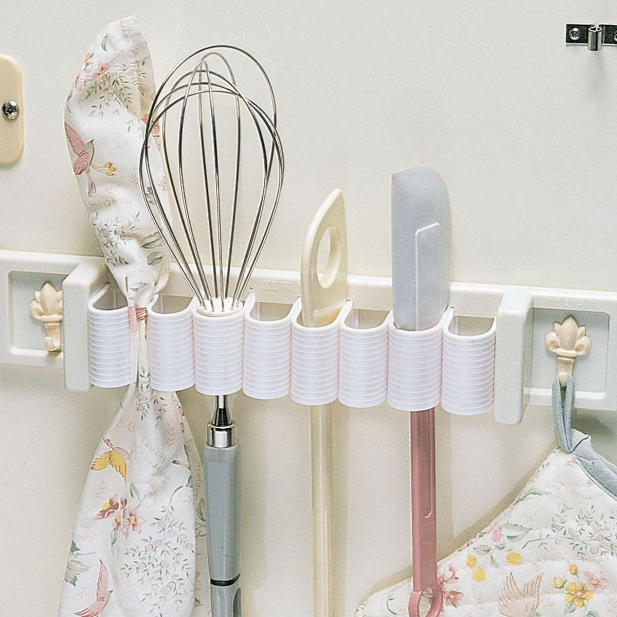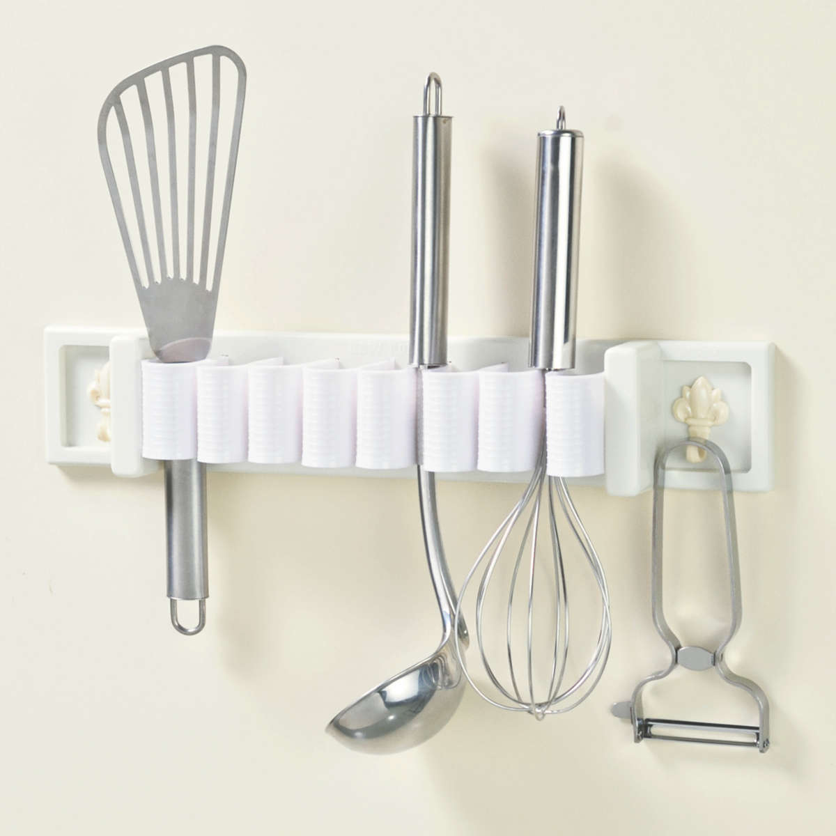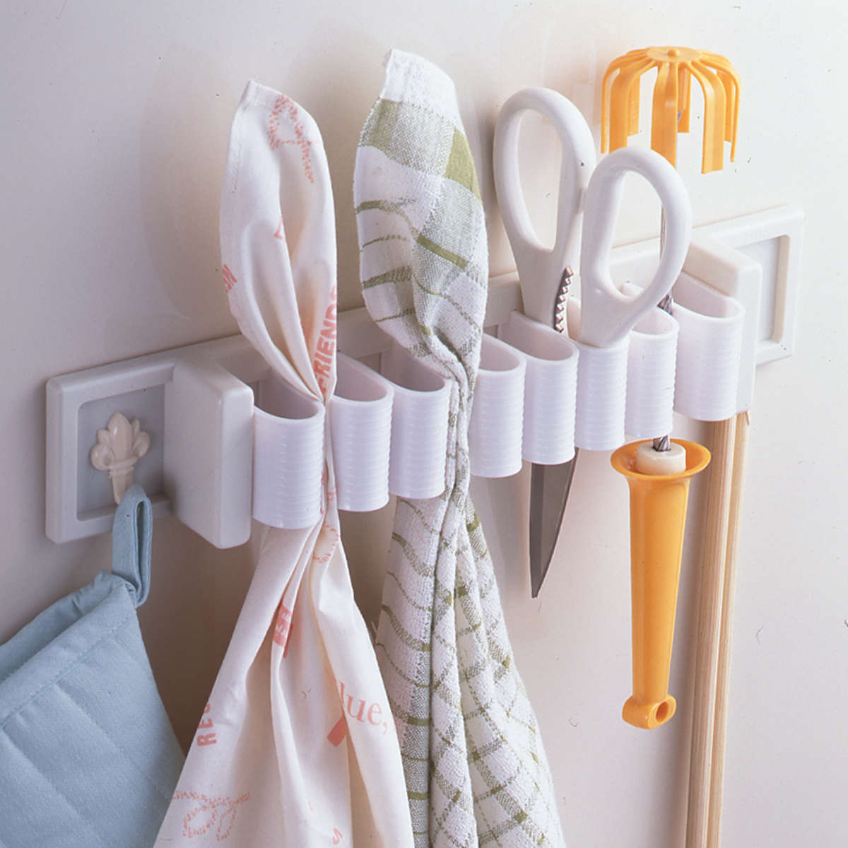 キッチンではもちろん、洗面所でタオルを掛けたり、ガレージで工具を収納したり、扉の内側につけたりとオールマイティーに使える便利品です。引き出しの中にセットしてカトラリーの整理整頓にも使えます。