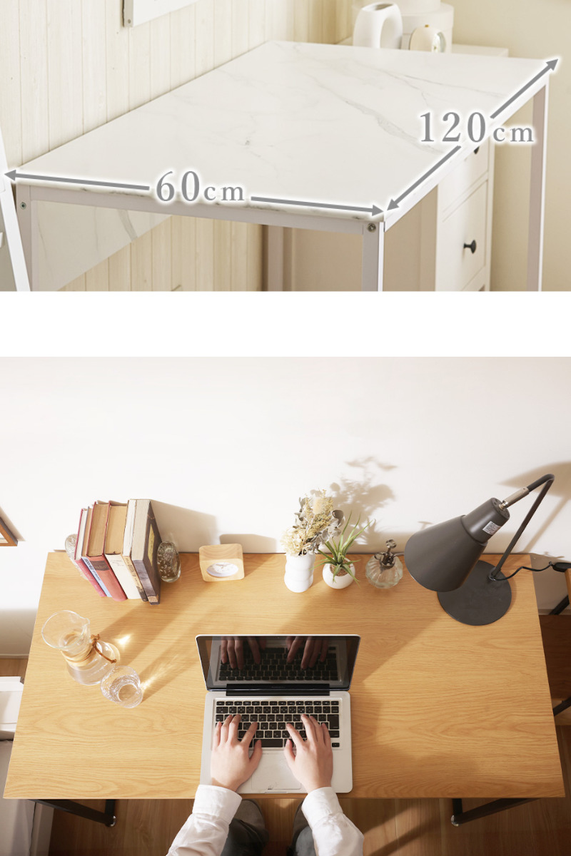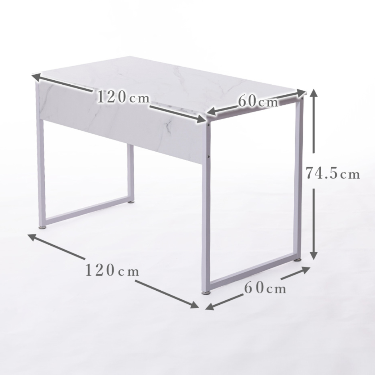 ワークデスク 幅120×奥行60cm シンプルデスク 大理石調 木目調 ストーン調 ( デスク 机 学習机 勉強机 パソコンデスク オフィスデスク コンパクト 平机 学習デスク パソコン PC リビングデスク スチール おしゃれ ) 【グレー】